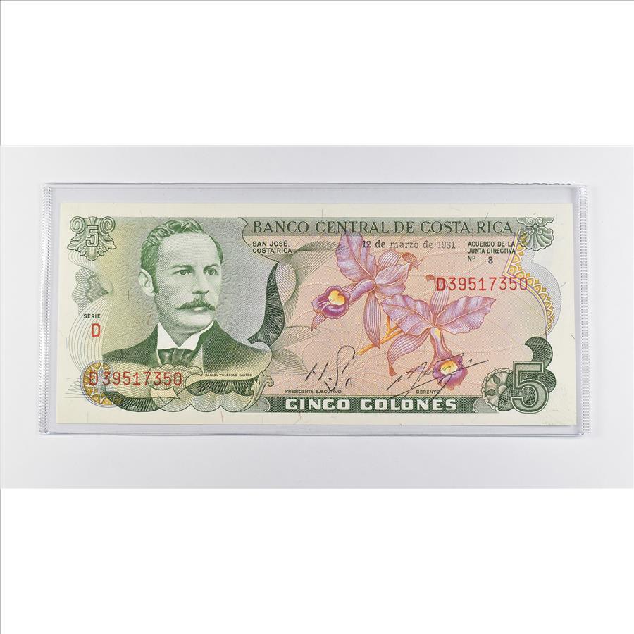 Historic World Bank Note 1981 Costa Rica 5 Colones Collectible Currency