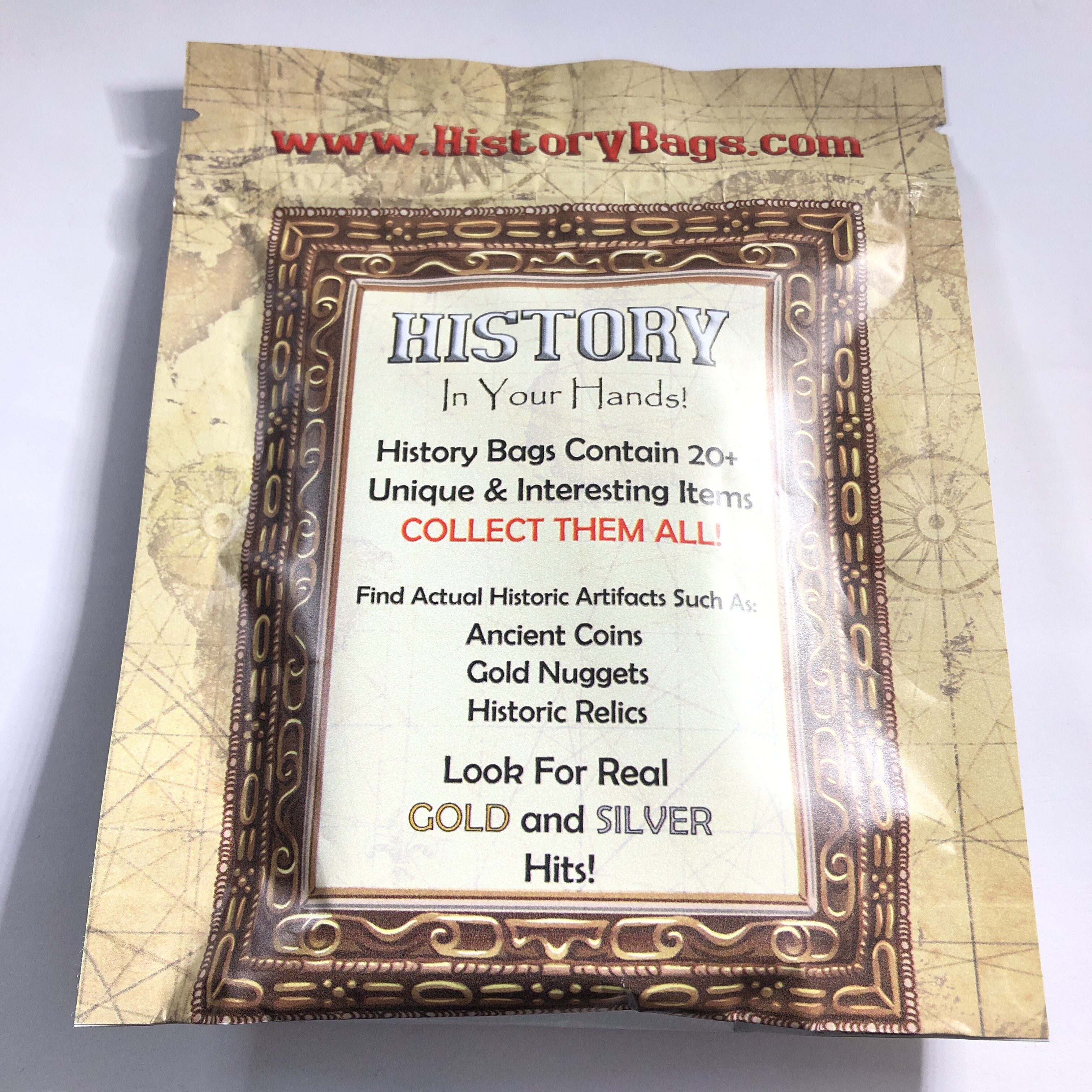 Embark on a thrilling journey through time with History Bags! Each bag is a treasure trove of the past, containing three authentic pieces of history that could range from ancient coins, historical artifacts, rare minerals, and even prehistoric fossils. Imagine the excitement of discovering an ancient Roman coin, a silver coin fabled to have been used by the Samurai, a real piece of coal from the Titanic, or a shimmering REAL gold nugget! And for the lucky few, a surprise awaits—some bags are sprinkled with precious hits! Unwrap the mystery, own a piece of history, and let the stories of yesteryear unfold in your hands. History Bags—where every grab is a glimpse into the bygone eras!