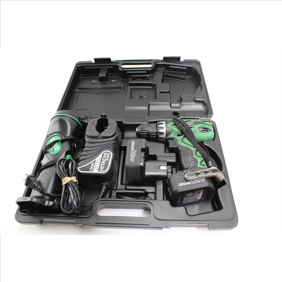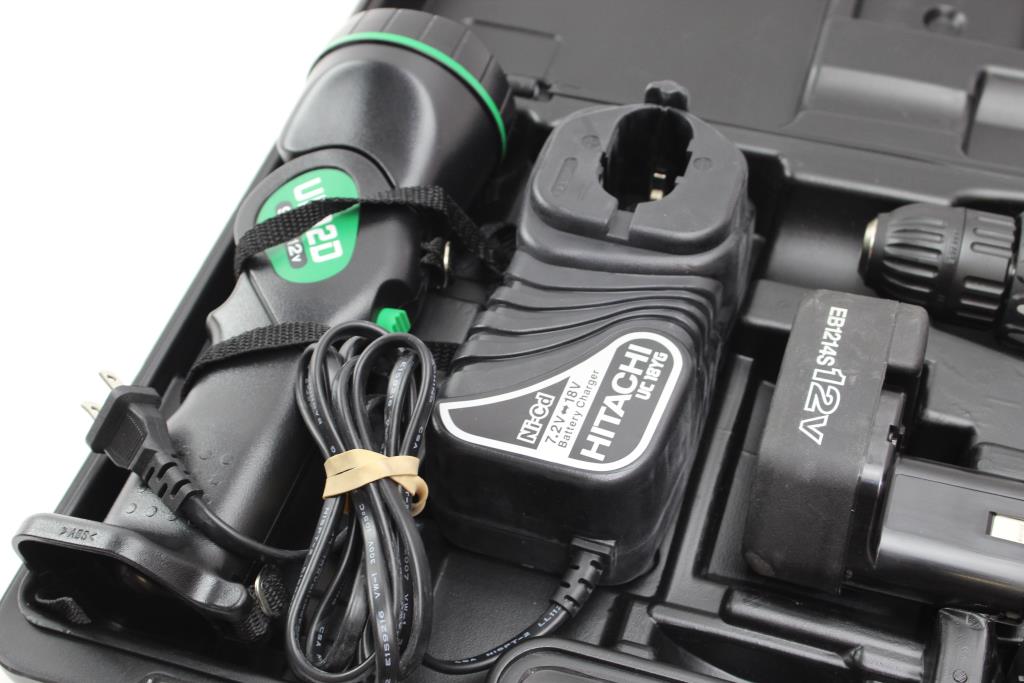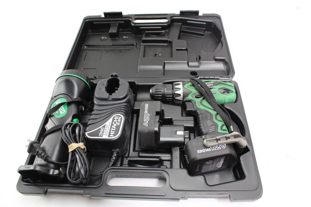 Hitachi Cordless Driver Drill With Flashlight, 12V Battery Pack And Other Accessories