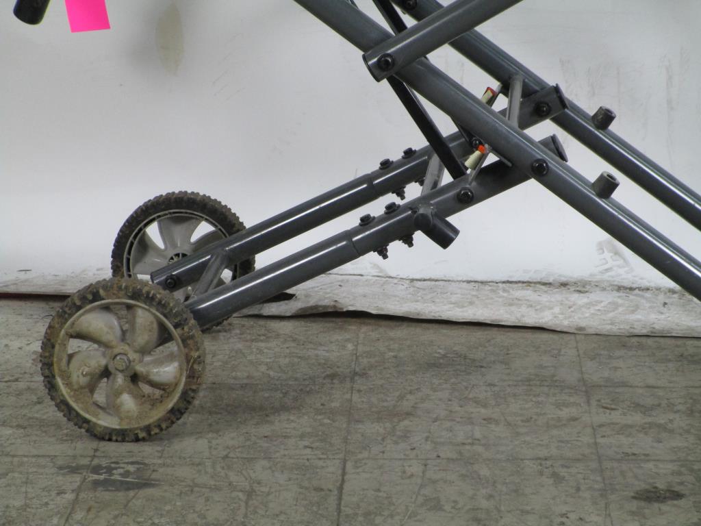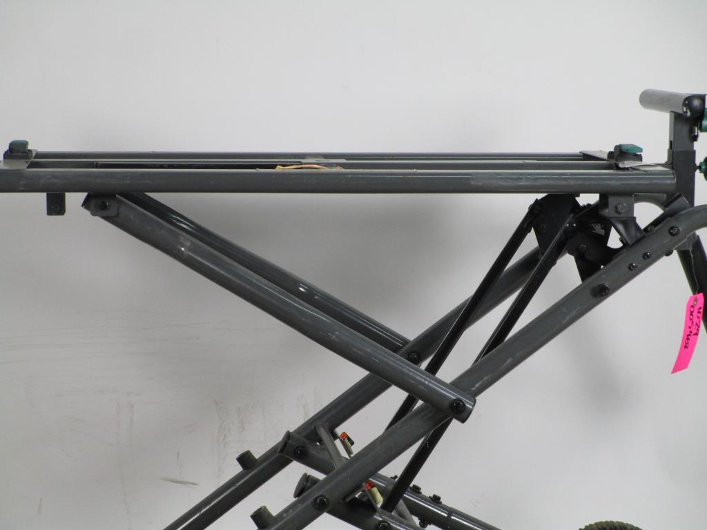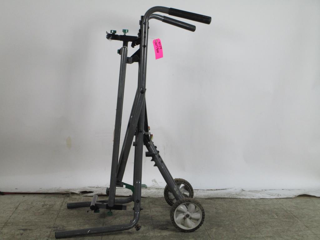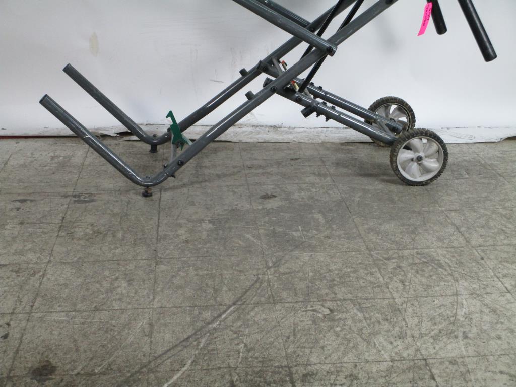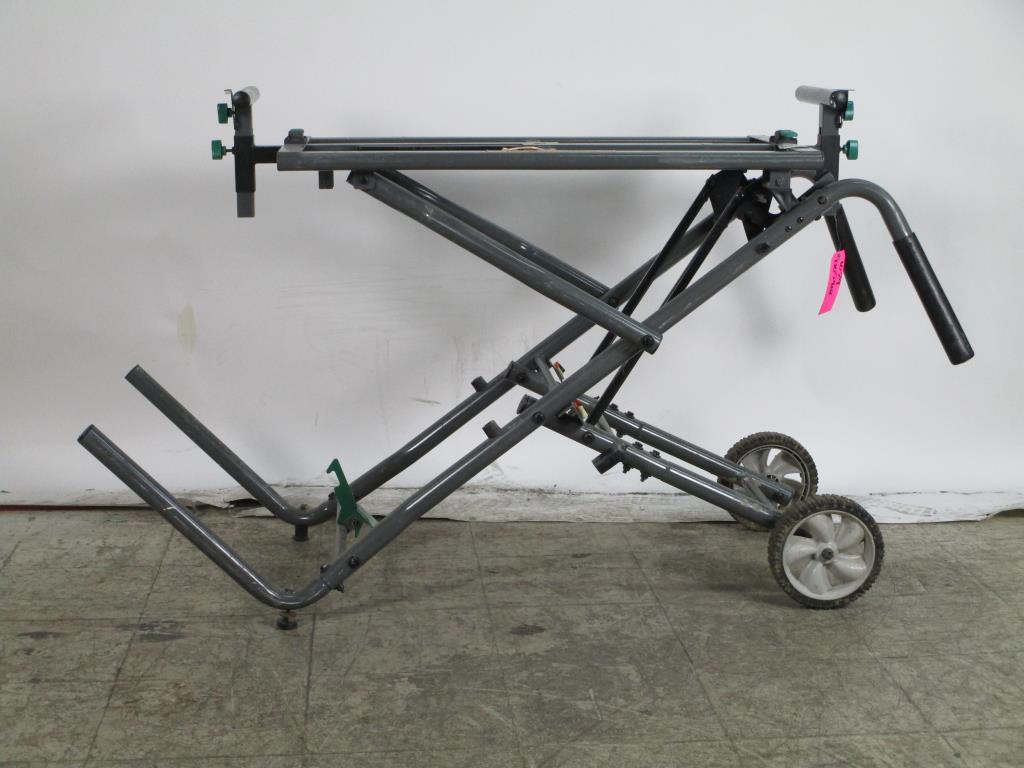 - 2 rubber grip handles for easy mobility, 2 weels for ease of movement, collapsable for storage, adjustable clamps to hold miter saw.