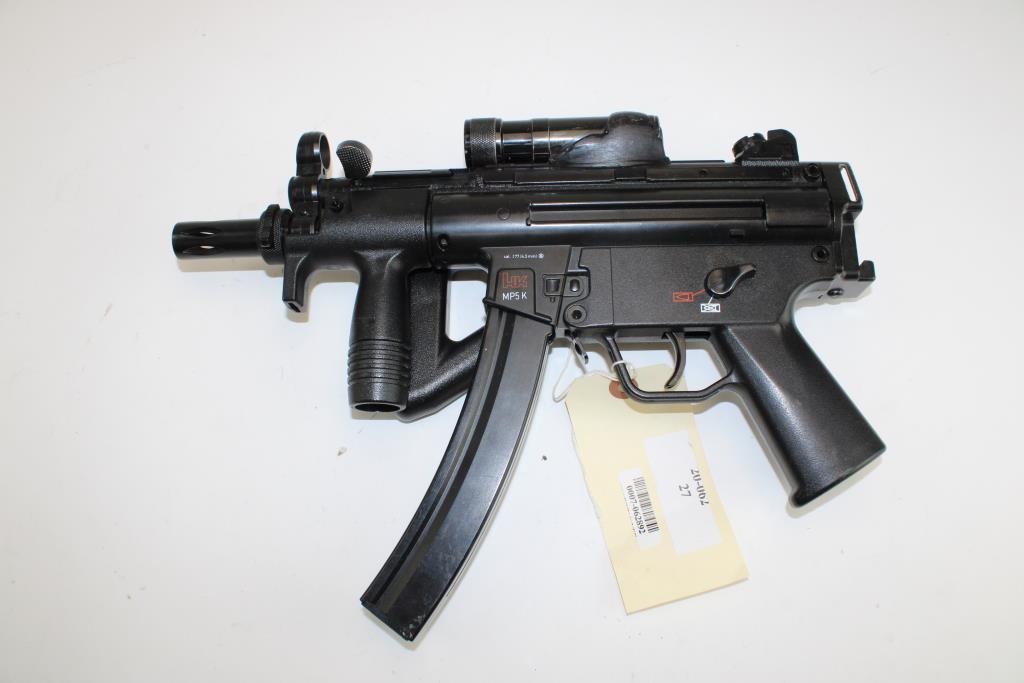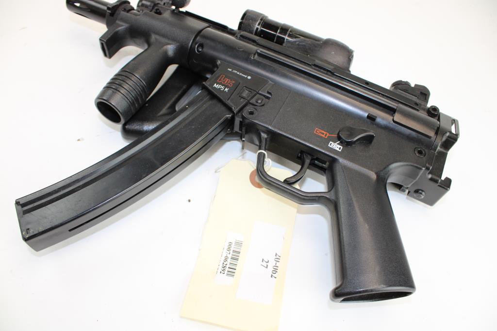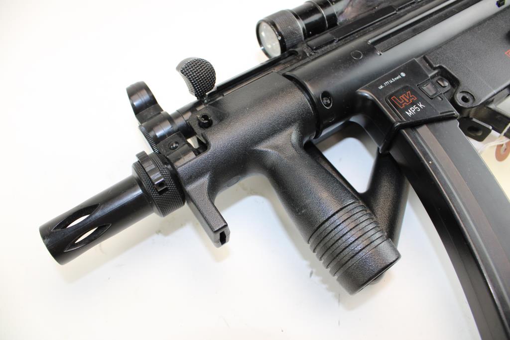 • Physical Condition: fair; item has some small scuffs & some dirt wear present; top area with flashlight part appears to be manually attached to gun/not factory attached