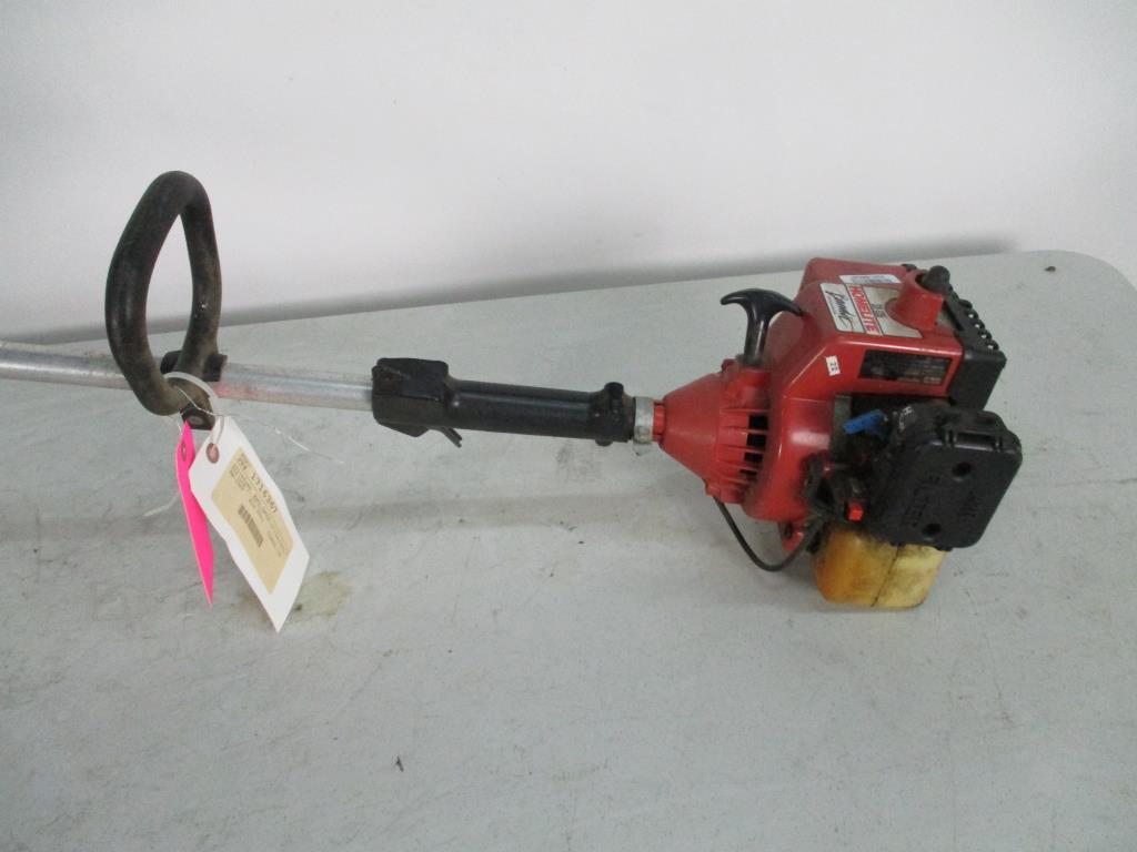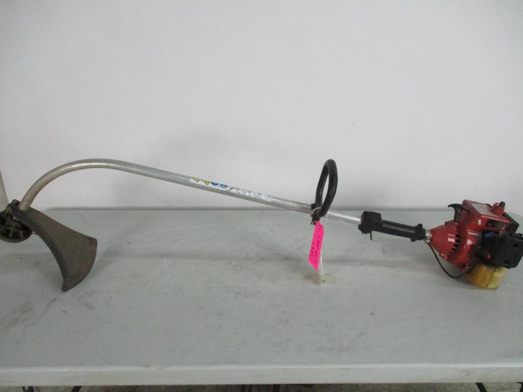 • gas powered, pull cord start, kill switch, curve bar, trigger throttle on handle, handle for stability, line guard