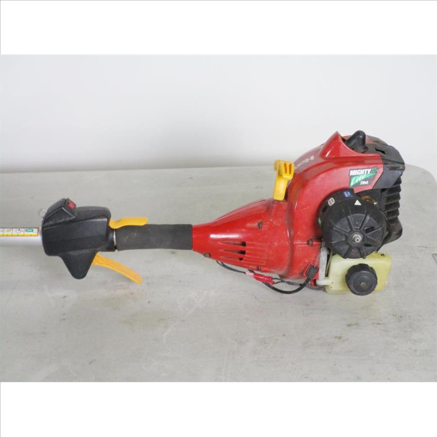 Get a great deal with this online auction presented by PropertyRoom.com on behalf of a law enforcement or public agency client. Brand: Homelite Model: Mighty lite Color: Red and Black Gas powered , pull cord start, Handle for stability, bar extension, curved bar, trigger / throttle, kill switch, line guard. - Measurements: 66" L.