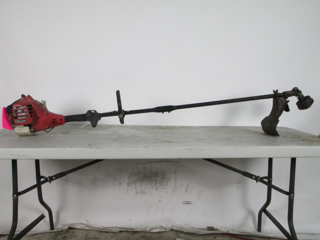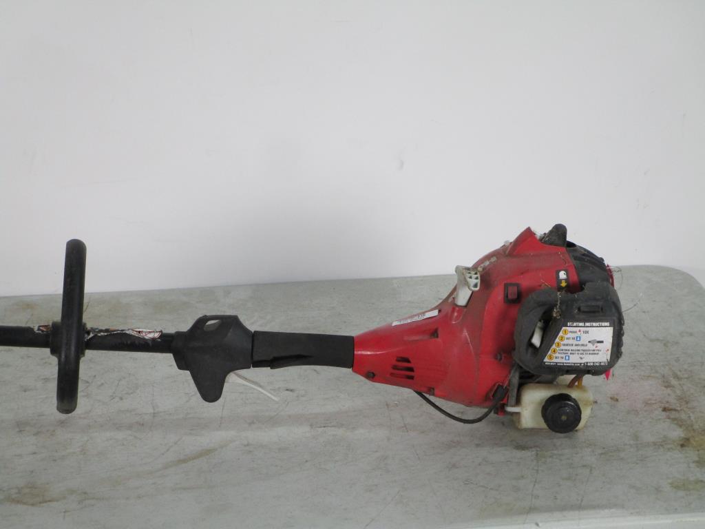 • Gas powered, pull cord start, kill switch, trigger and throttle on handle, line guard, straight bar, handle for stability.