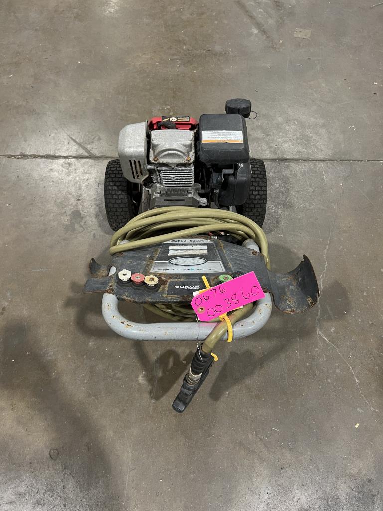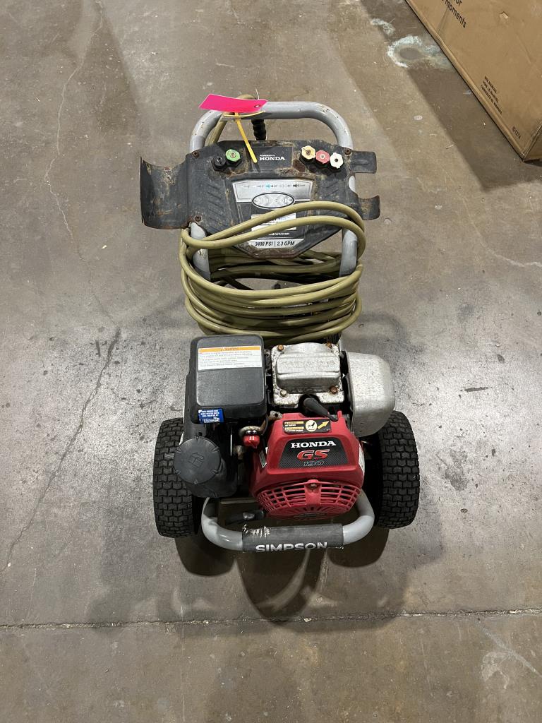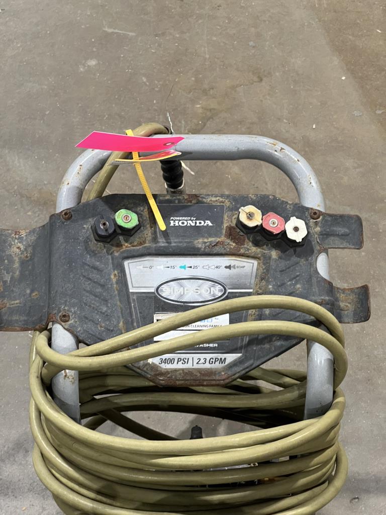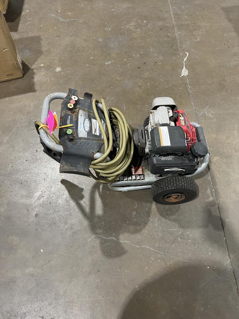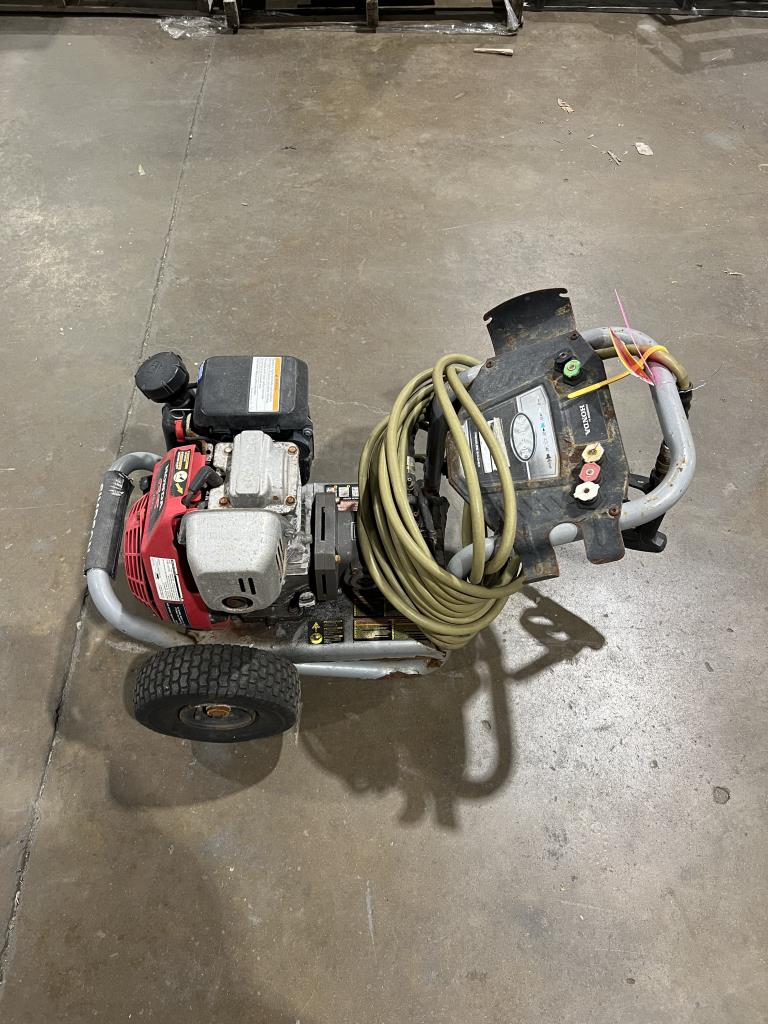 - Item info: gas powered, pull cord start, dual wheels, 20ft hosw w/ sprayer, 5 tips to, soap