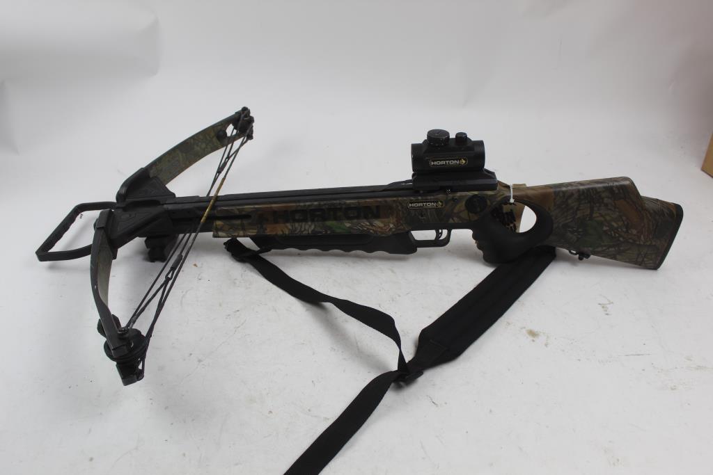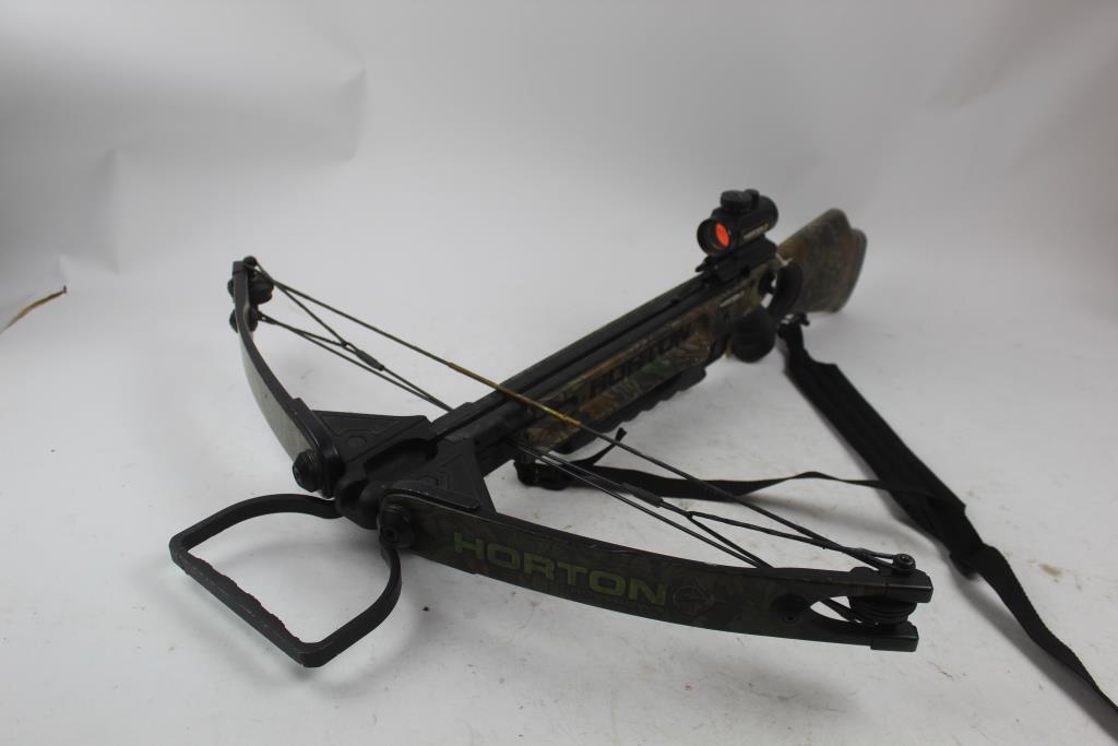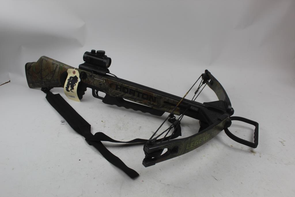 Get a great deal with this online auction presented by PropertyRoom.com on behalf of a law enforcement or public agency client. Model: Horton Legend XL175 Compound CrossBow Color: green camouflage Bow Length: Approx 37 1/2" Draw Length: not listed Draw Weight: not listed Draw: Appears Left Handed or Right Handed Accessories: none Cosmetic Condition: good condition, visibly worn, may have scratches and may be a little dirty Shipment by PropertyRoom to any jurisdiction does not mean this item is legal in such jurisdiction. It is your responsibility to have knowledge of, obey, or comply with all applicable laws relating to this item.