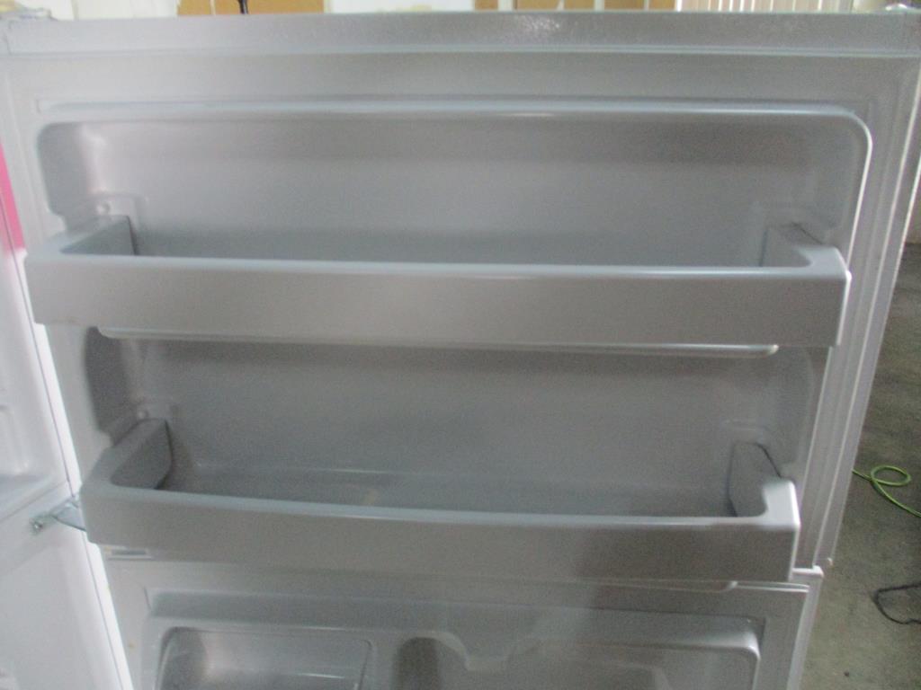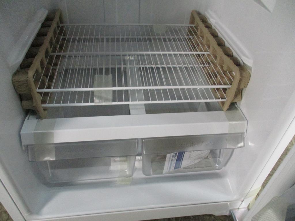 - Accessories: top and bottom doors, freezer has 1 shelf, 2 door shelves, fridge, 2 metal shelves, 2 storage drawers, 2 door shelves, butter tray w/ door.
