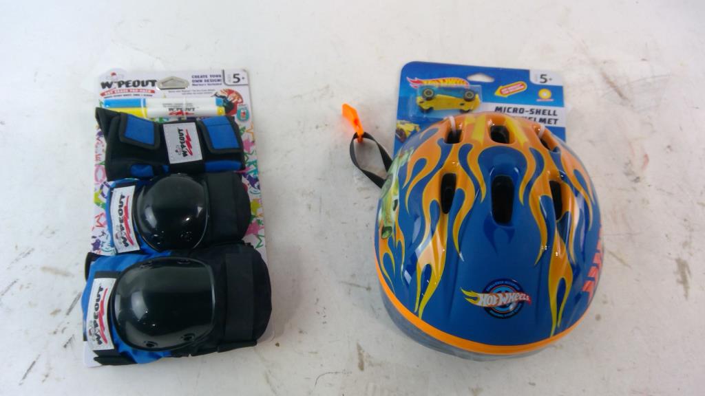 Get a great deal with this online auction presented by PropertyRoom.com on behalf of a law enforcement or public agency client. - Hotwheels Microshell Bike Helmet, Wipeout dry erase pad pack