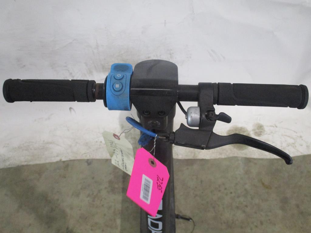 - Item info: Battery 37 max volts, 264 lbs max weight, max battery 10AH, lithium battery, manufactory date is 07/21, kick stand, foldable, thumb throttle, brakes on left handle, bell, no charger.
