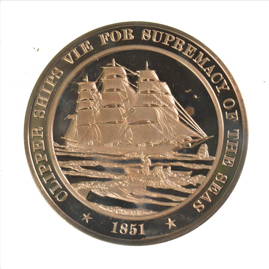 HUGE Bronze Medal Depicting Clipper Ships Vie For Supremacy