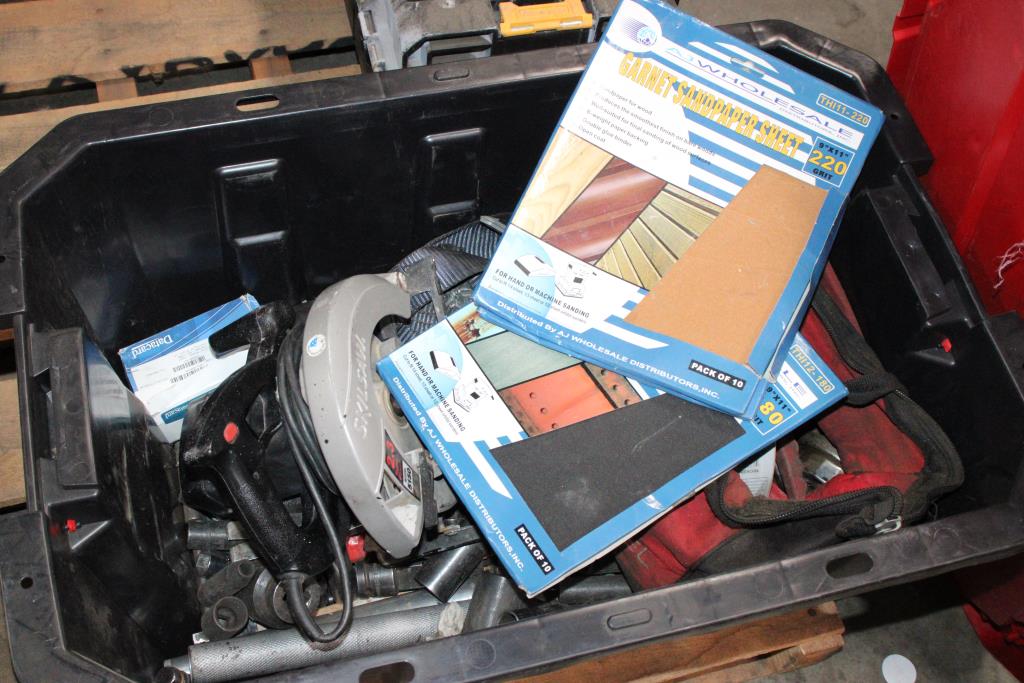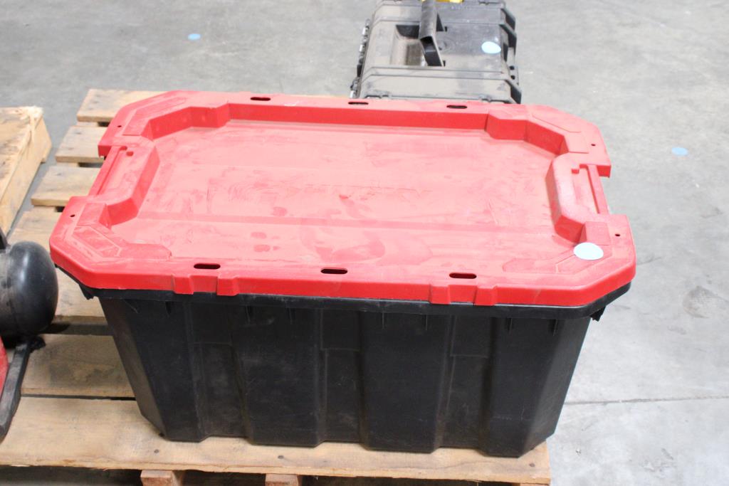 Husky 25 Gal Latch And Stack Tote With Mixed Tools