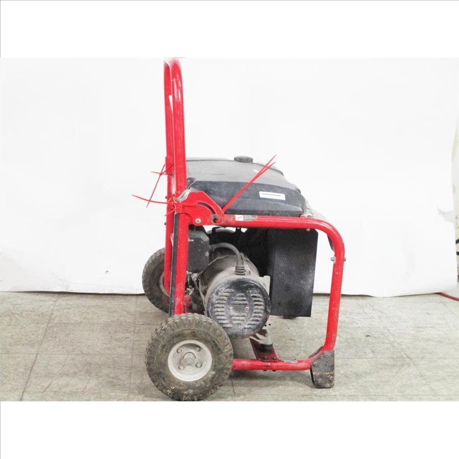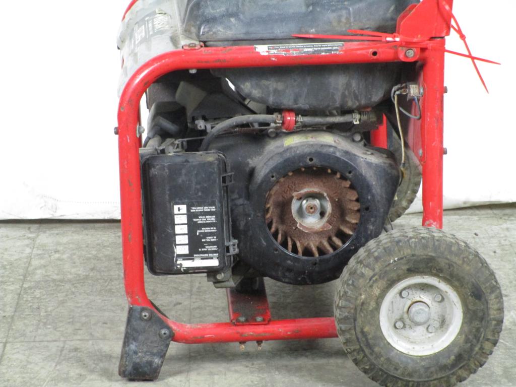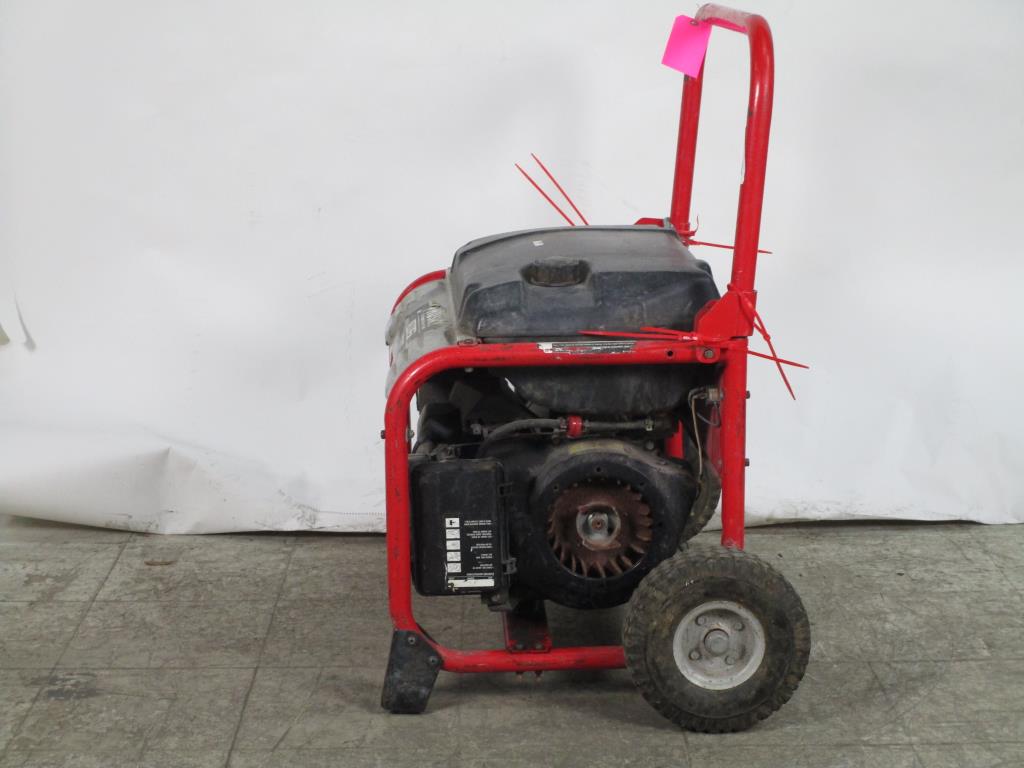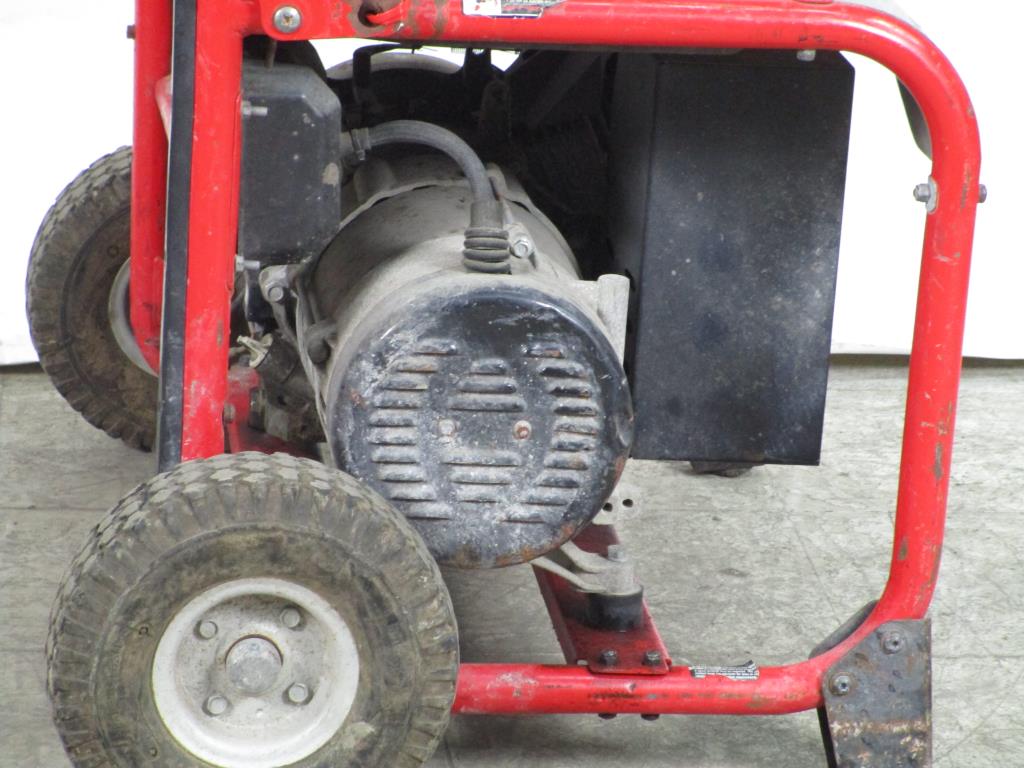 - Gas powered, pull cord start, handle with dual wheels for easy mobility, on/off switch, 5000 running watts, 6250 starting watts, 120v/240v, dual 120v plugs, breaker reset button