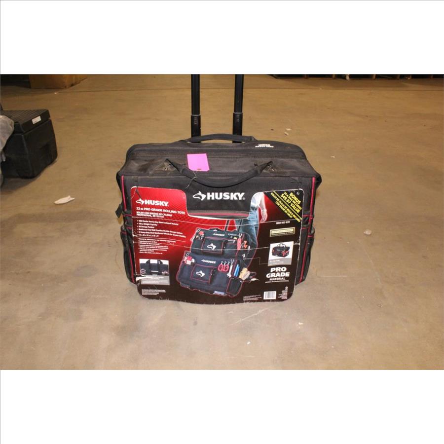 Get a great deal with this online auction for tools presented by Property Room on behalf of law enforcement or public agency client. - Husky rolling Pro Grade tool tote, 1000 053 039, 22.5" x 13" x 17"