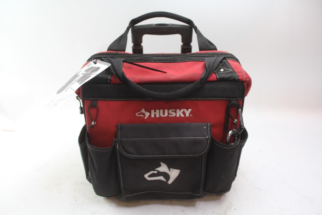 Get a great deal with this online auction presented by PropertyRoom.com on behalf of a law enforcement or public agency client. - Husky Trolley Tool Bag, Hex Keys, Jumper Cable, Shear, Level, Plier And More: Husky: 5+