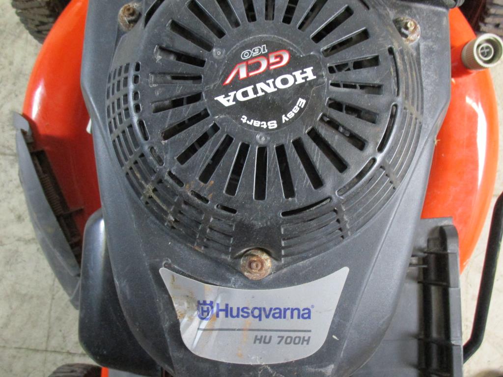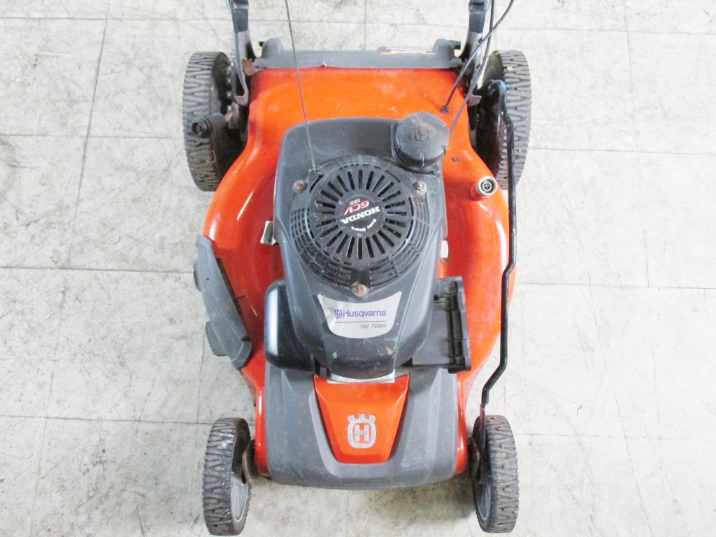 Get a great deal with this online auction for a husquavarna lawn mower presented by Property Room on behalf of law enforcement or public agency client. Brand: Husquavarna Model: HU700H Color: Black and Orange gas powered, pull to start, 3 in one, mulch, side discharge, rear discharge, with bag Motor: Honda GCV 160 - Measurements: 38" height, 24" Width, 76" length