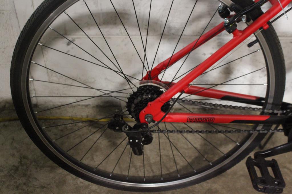 Get a great deal with this online auction presented by PropertyRoom.com on behalf of a law enforcement or public agency client. Frame Size: 17" Frame Material: AluminumSpeeds: 21Tire Size: 700 x 35CBrakes: Sparkle V-BrakeSuspension: NoneDerailleurs: ShimanoShift Type: Grip-TwistFrame Color: Red and blackPhysical Condition: Good, with scratches, scuffs, dirt, and wearThis bike has not been evaluated by a bicycle mechanic. Item may not have original parts, parts included may be damaged and non-functional. Parts may need to be adjusted, repaired or replaced. Some parts may be missing. Assembly Required: Bikes picked up at Will-Call are fully assembled but bikes that are shipped will require some assembly. Condition: Good