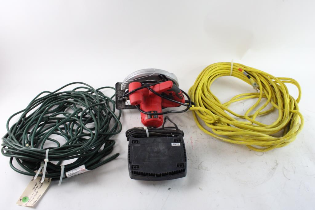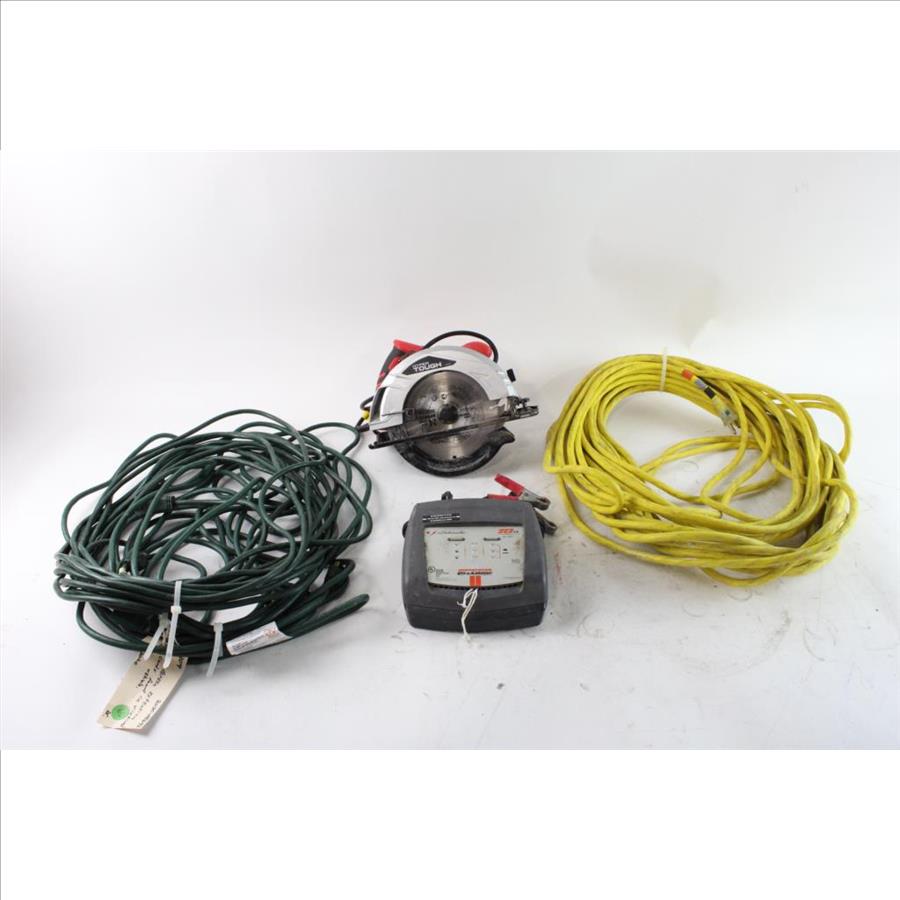 Get a great deal with this online auction presented by PropertyRoom.com on behalf of a law enforcement or public agency client. - Circular saw, schumacher charger, cables