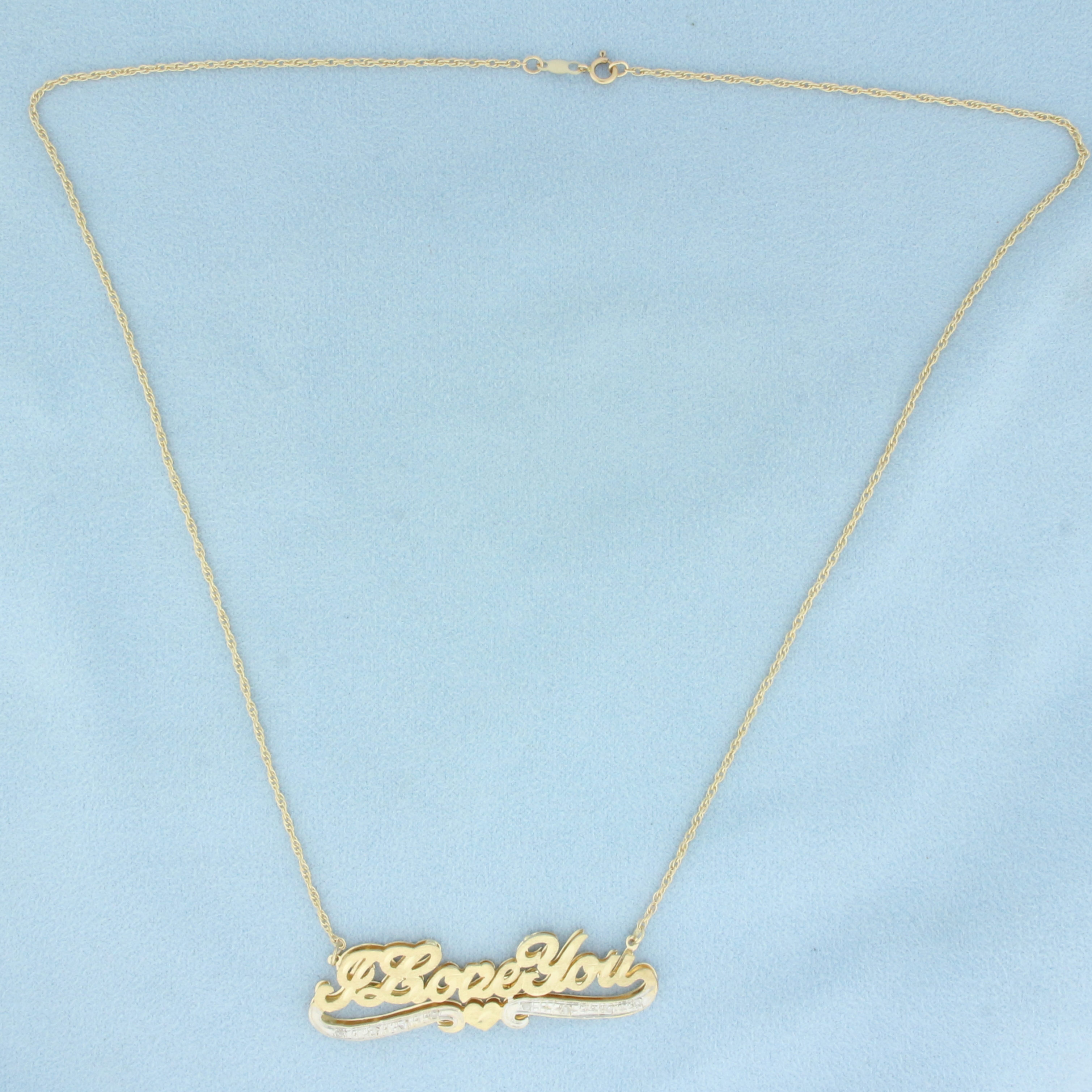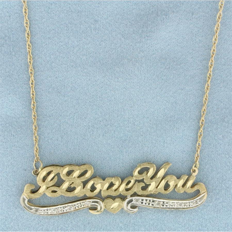 I Love You Diamond Necklace in 14k Yellow Gold