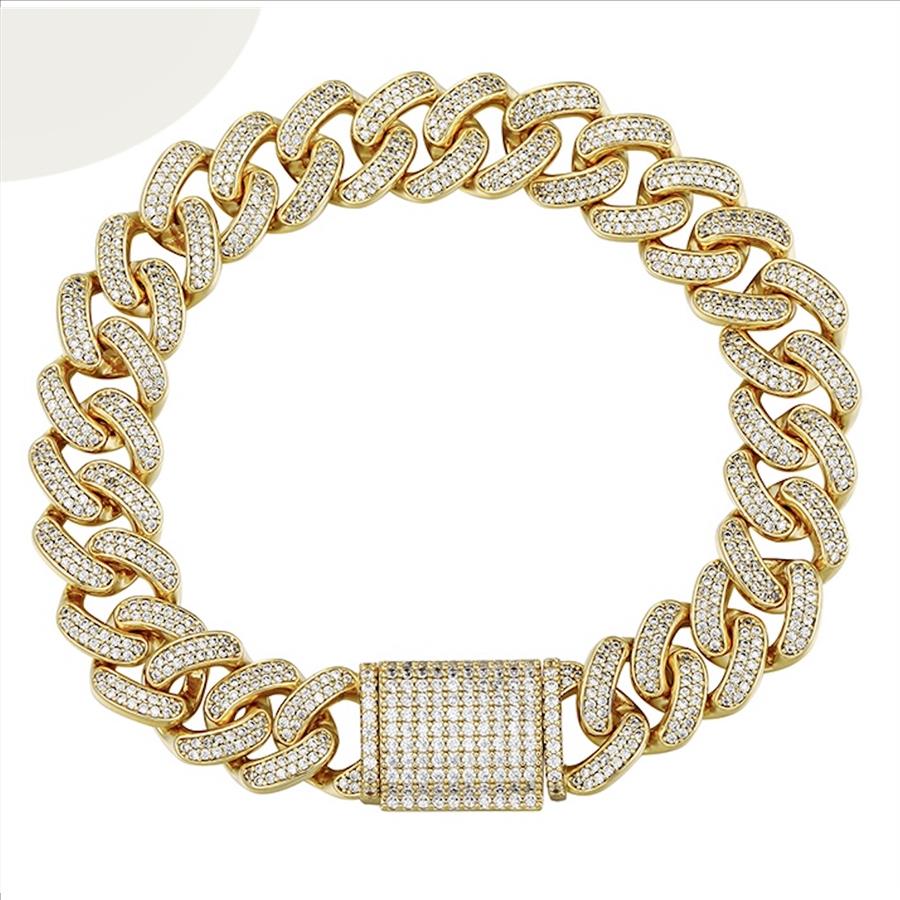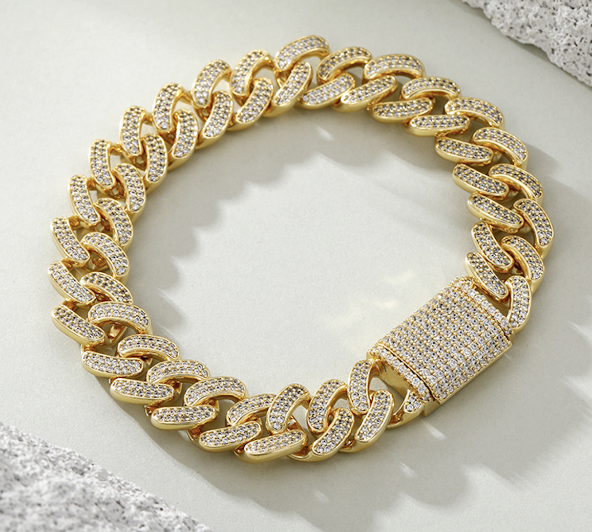 Iced Out 14.0mm 14K Gold Plated Cuban Link Bracelet