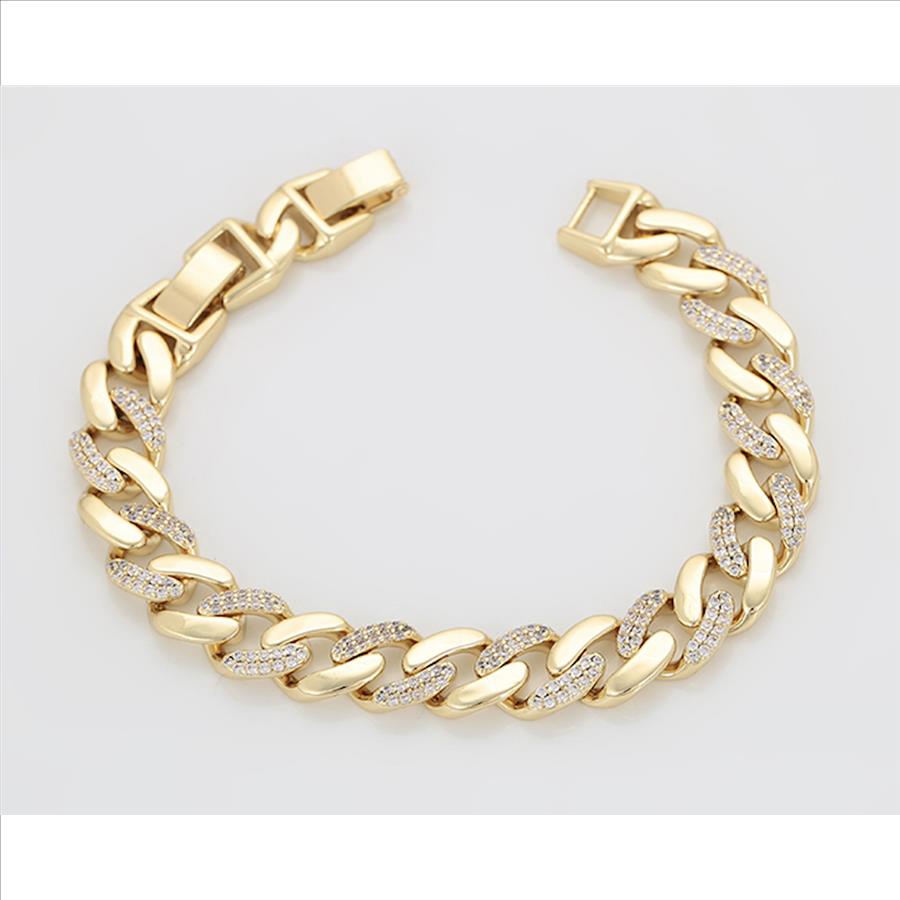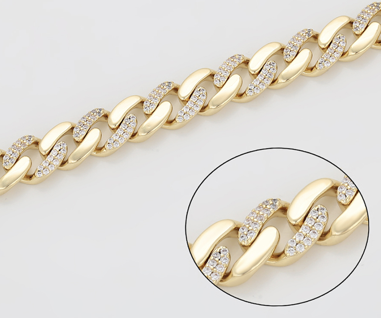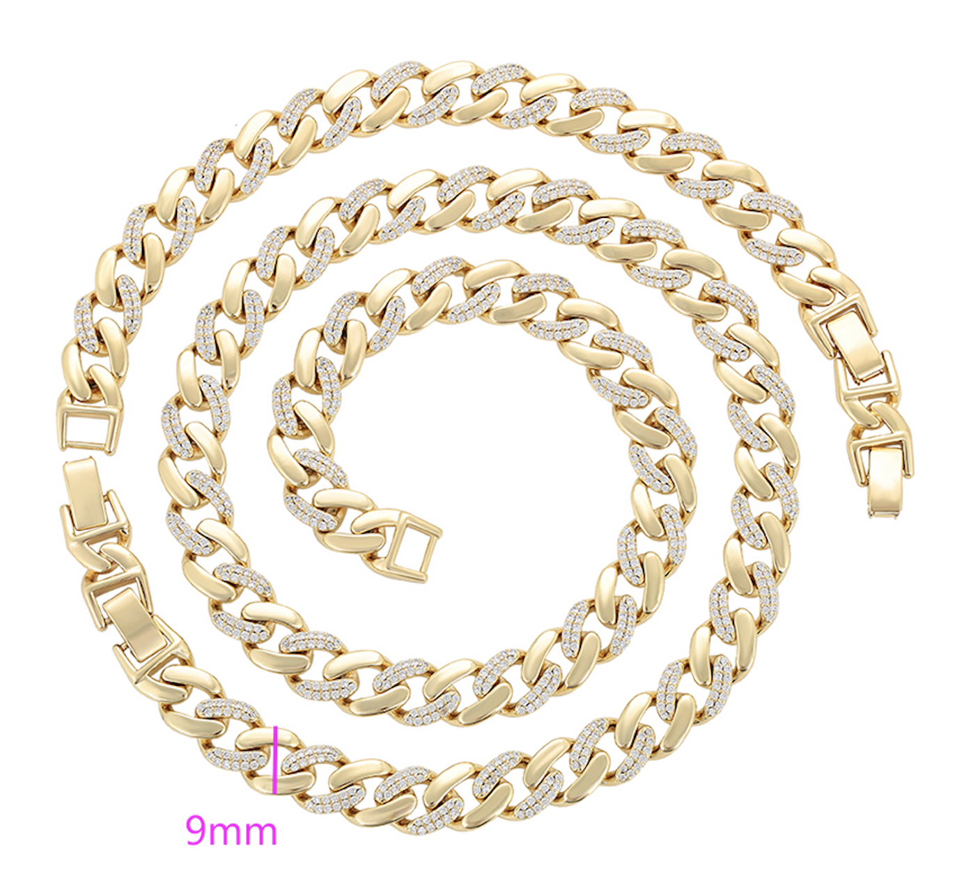 Iced Out 9.0mm 14K Gold Plated Cuban Link Bracelet