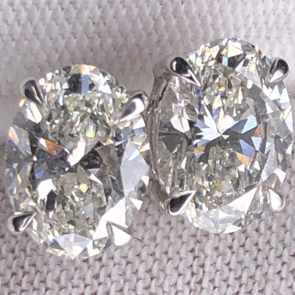 4 Carat Oval Solitaire VS Clarity Diamond Stud Earrings In 14k White Gold