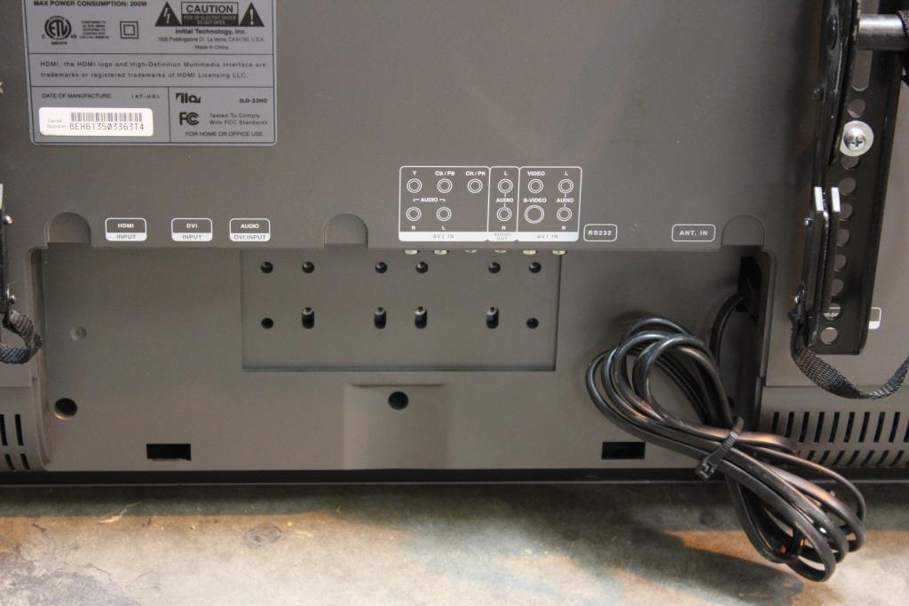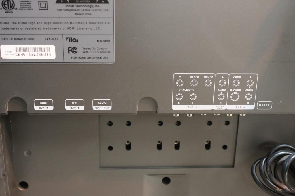 Get a great deal with this online auction for a TV presented by Property Room on behalf of law enforcement or public agency client. Model: ILO-32HD Screen Size: 32" Date of Manufacture: Not Listed Measurements: 31"z22.5"x4" Base: None Included Remote Control: None Included Power Cord: Included Accessories: Wall Mount Brackets Cosmetic Condition: Marks, Scratches, and Scuffs Testing Results: Item was tested for power only and it powered on, displayed menu. Input and output ports were not tested and may be non-functional. Item is sold "As Is".