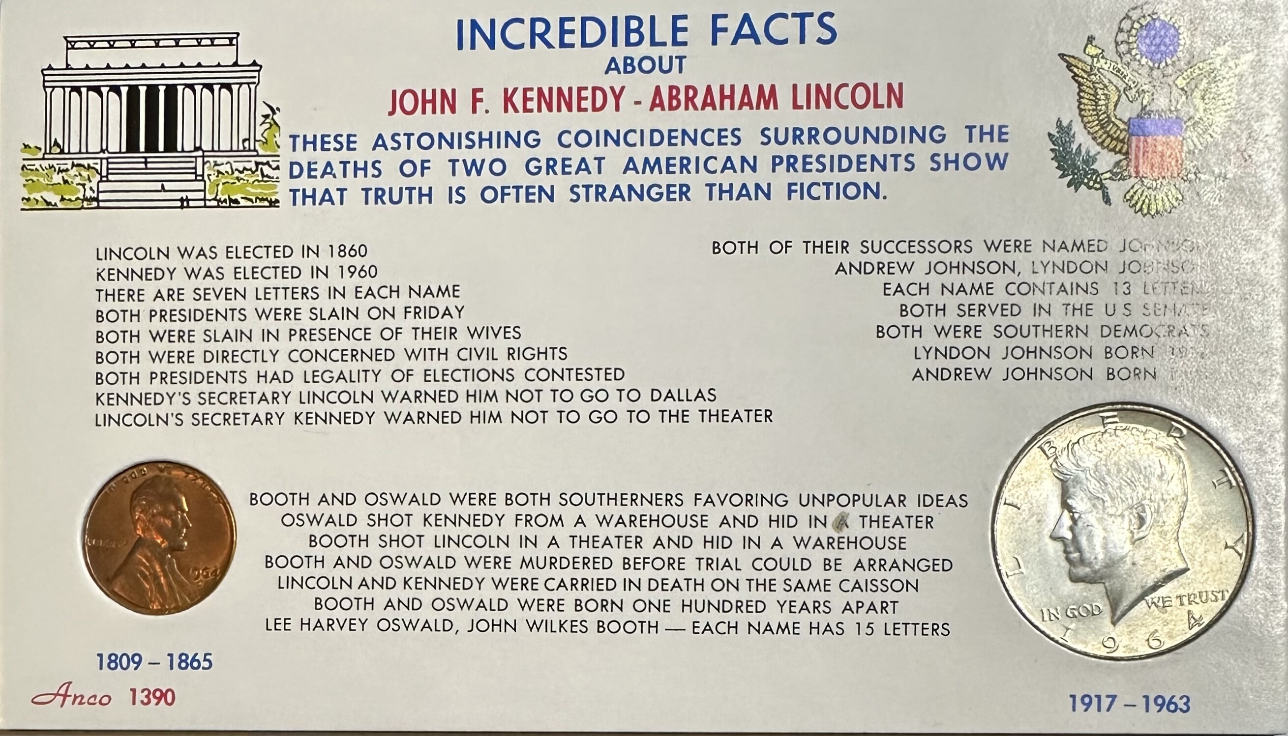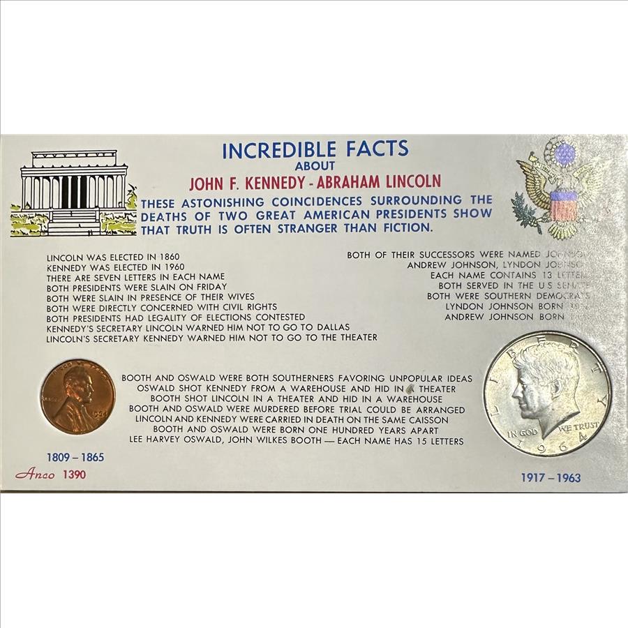 >Incredible Facts About Kennedy & Lincoln Life and Death-Including 1964-D U.S. Lincoln Cent and 1964 Kennedy Silver Half Dollar