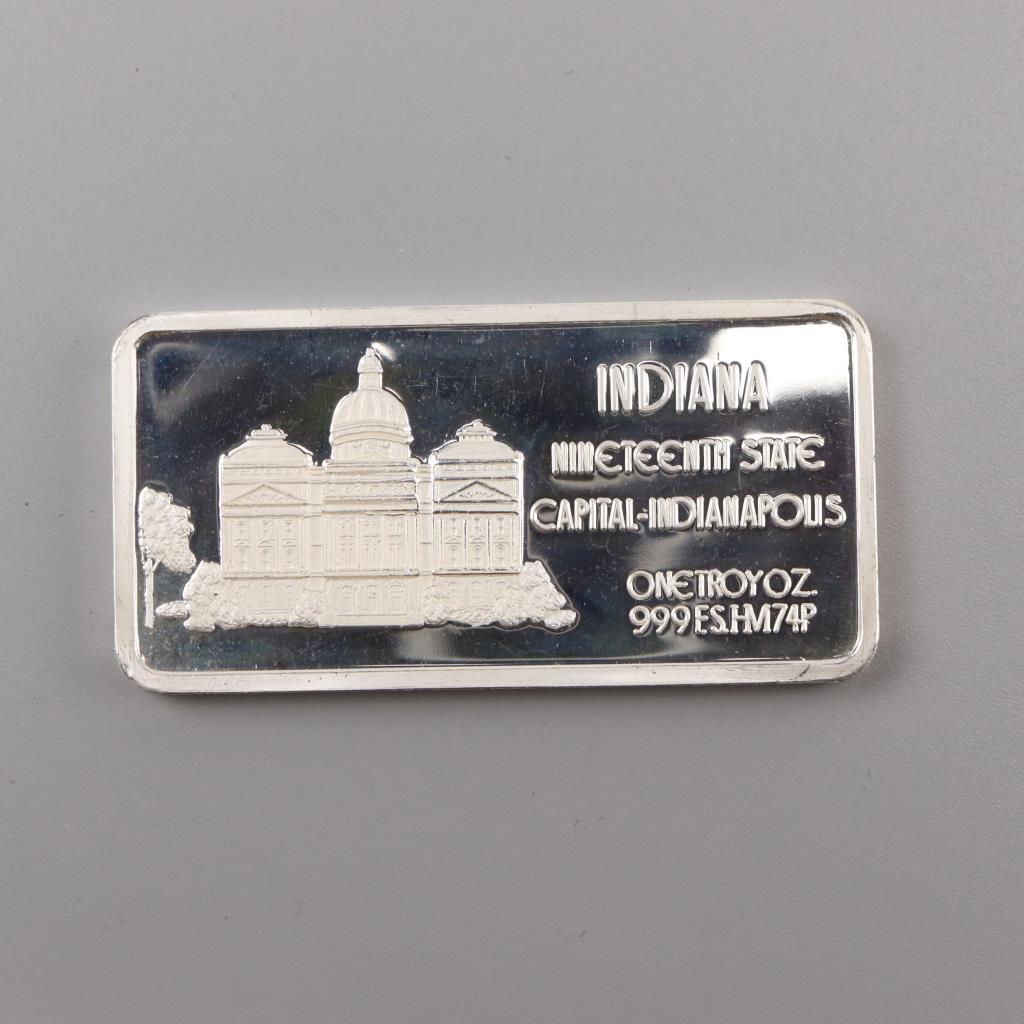 Indiana 19th State Fine Silver 1 Troy Oz Bar