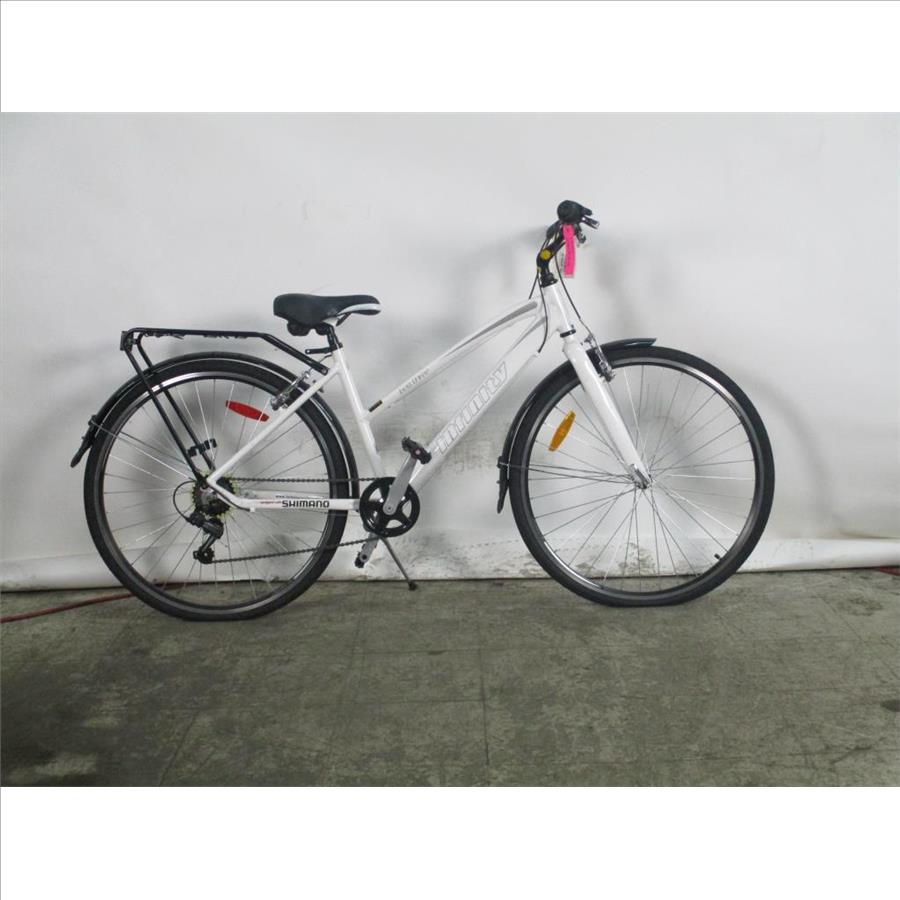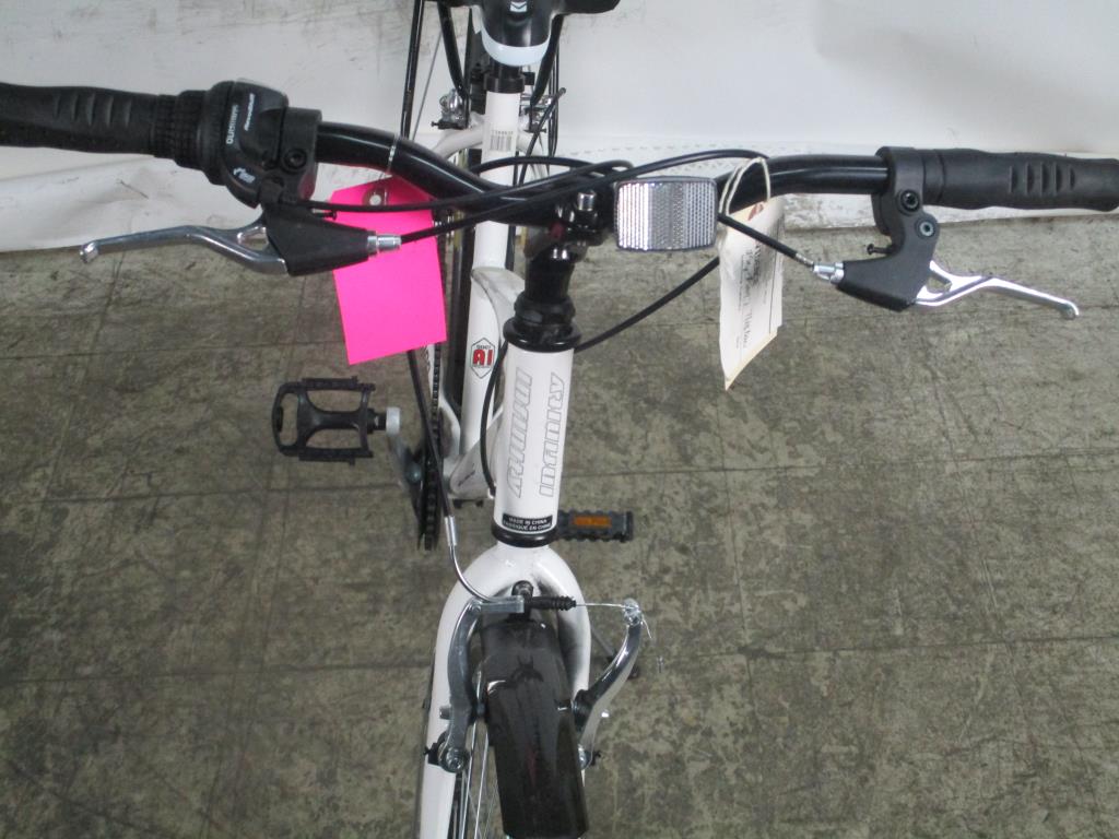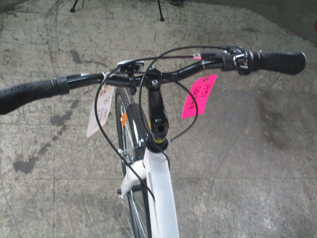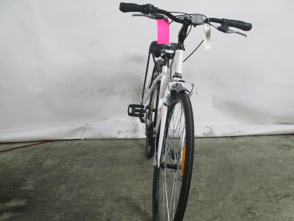 Get a great deal with this online auction presented by PropertyRoom.com on behalf of a law enforcement or public agency client. Frame Size: 16"Frame Material: 6061 AluminumSpeeds: 21Tire Size: 700 x 38cBrakes: [brand and type] Shimano v brakesDerailleurs: back 7, front 3 Shimano TourneyShift Type: Grip Revo shiftFrame Color: WhitePhysical Condition: good, scratches, nicks, dirtyThis bike has not been evaluated by a bicycle mechanic. Item may not have original parts, parts included may be damaged and non-functional. Parts may need to be adjusted, repaired or replaced. Some parts may be missing. Condition: Untested - Sold as-is This item is untested and may require repair. Item is sold "As Is" and is not returnable.Due to size, weight or other reasons this item requires a customer pick-up special handling fee of $15.95. All items listed in this auction are for Pick-up ONLY. - The item may be picked up in person, or by an authorized pick up person, at our Memphis, TN area cross dock Monday through Friday from 10 AM to 2 PM local time. Please note, Customers must bring appropriate equipment, vehicle and manpower for oversize/large items. Item must be picked up within 7 business days.