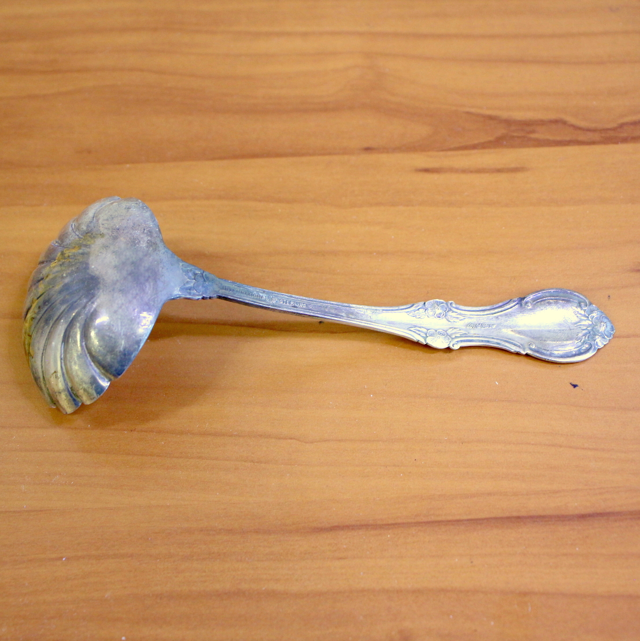International Wild Rose Sterling Silver Shell Bowl Gravy Ladle