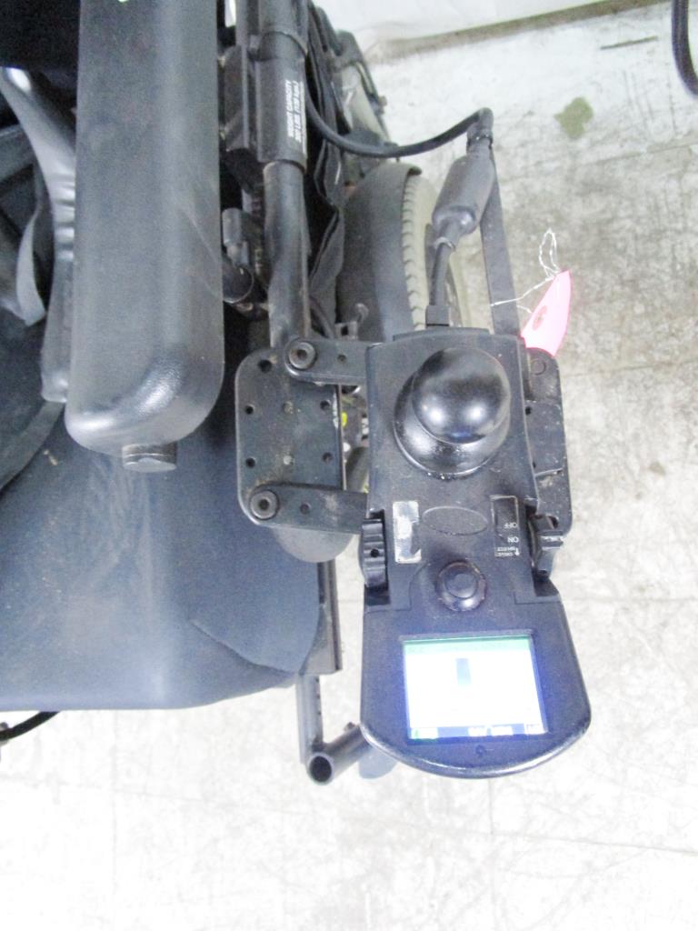 - Electric no charge cord, seat w/ head rest, missing foot rests, digital display on left arm rest w / forward/backward/left/right turn knob, dual handles w/6 wheels for easy mobility in tight places.