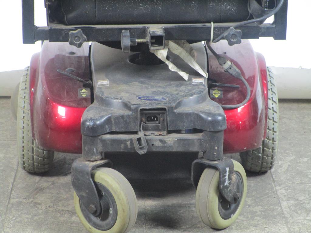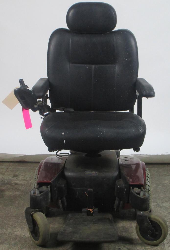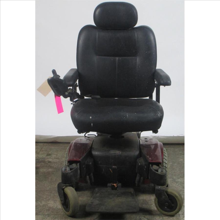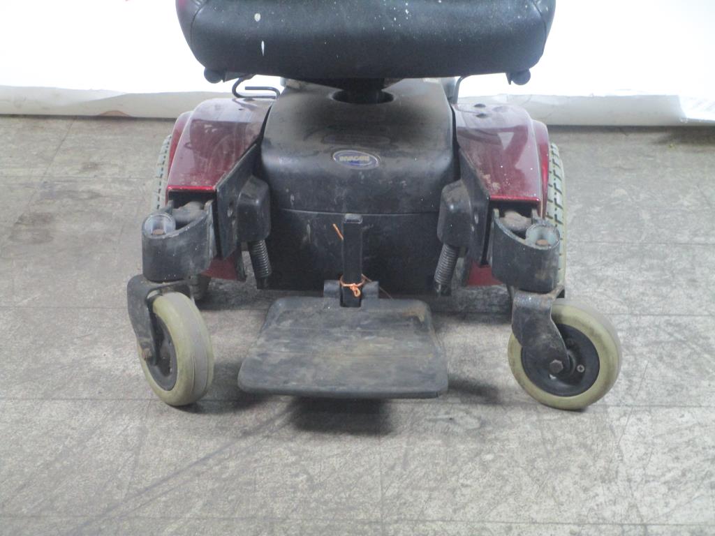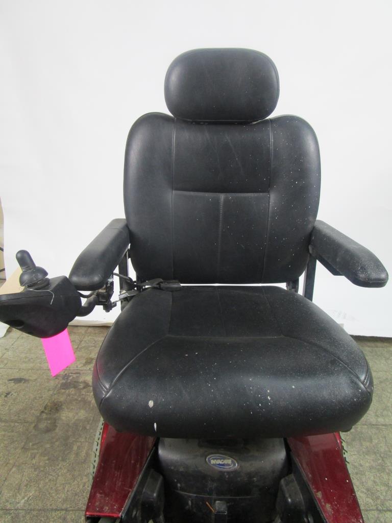 - Battery powered, foot rest /step plate, toggle driven, 6 wheels for easy mobility, adjustable arm rests, leather seat w/head rest and arm rests, on/off switch, horn, adjustable speed, seat belt.
