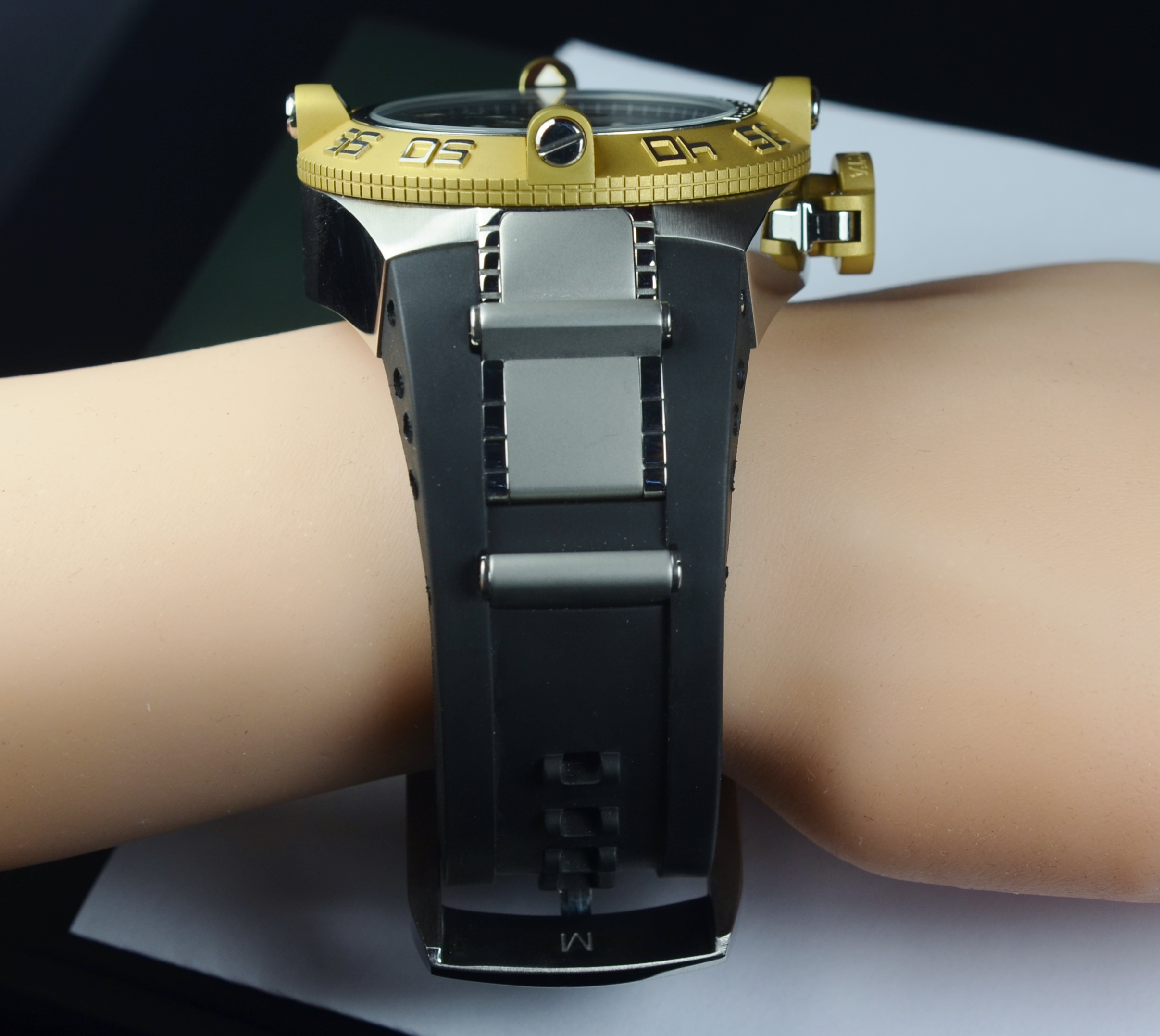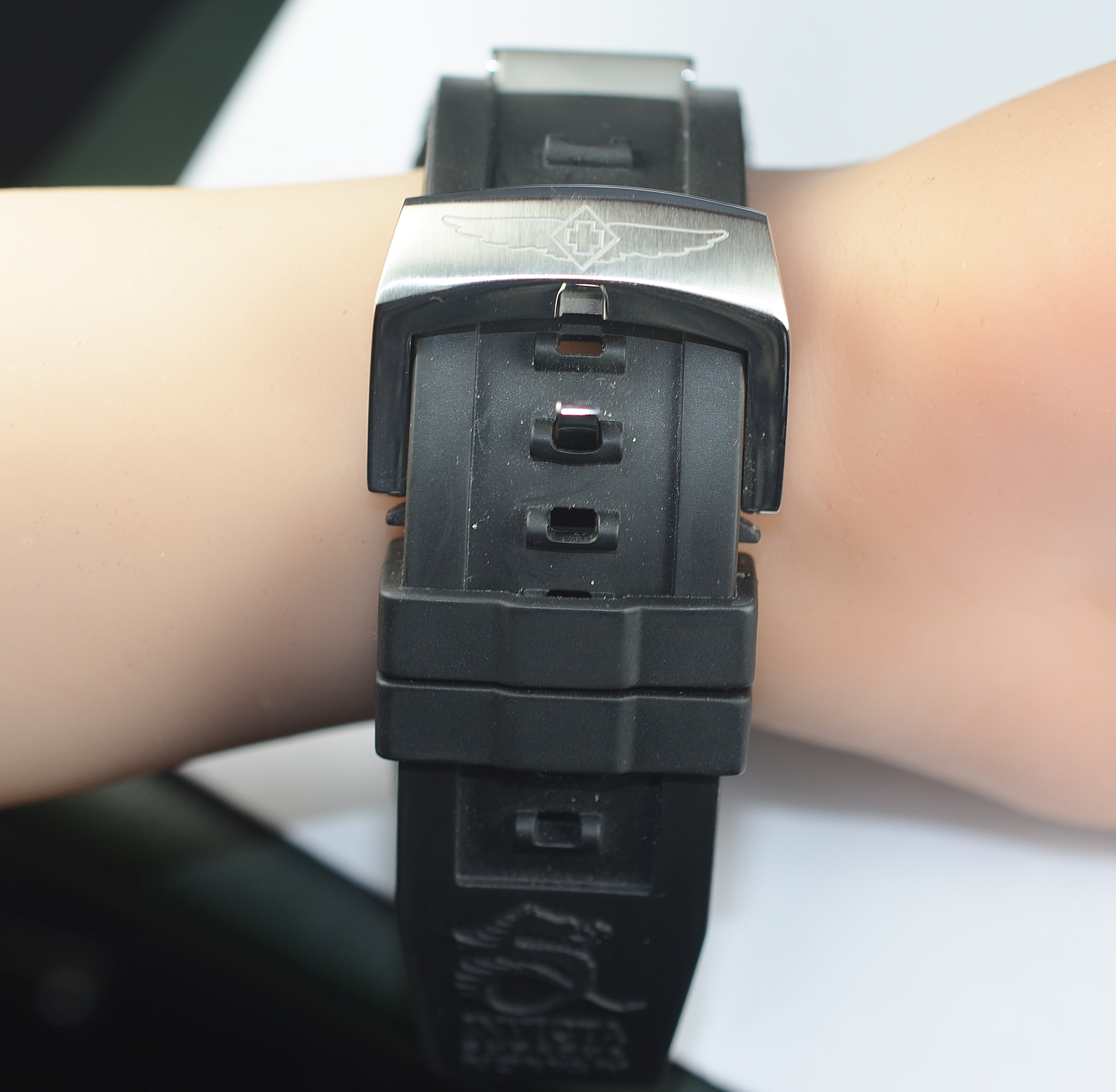 Band Material:  Black Rubber Strap With Stainless Steel Accents