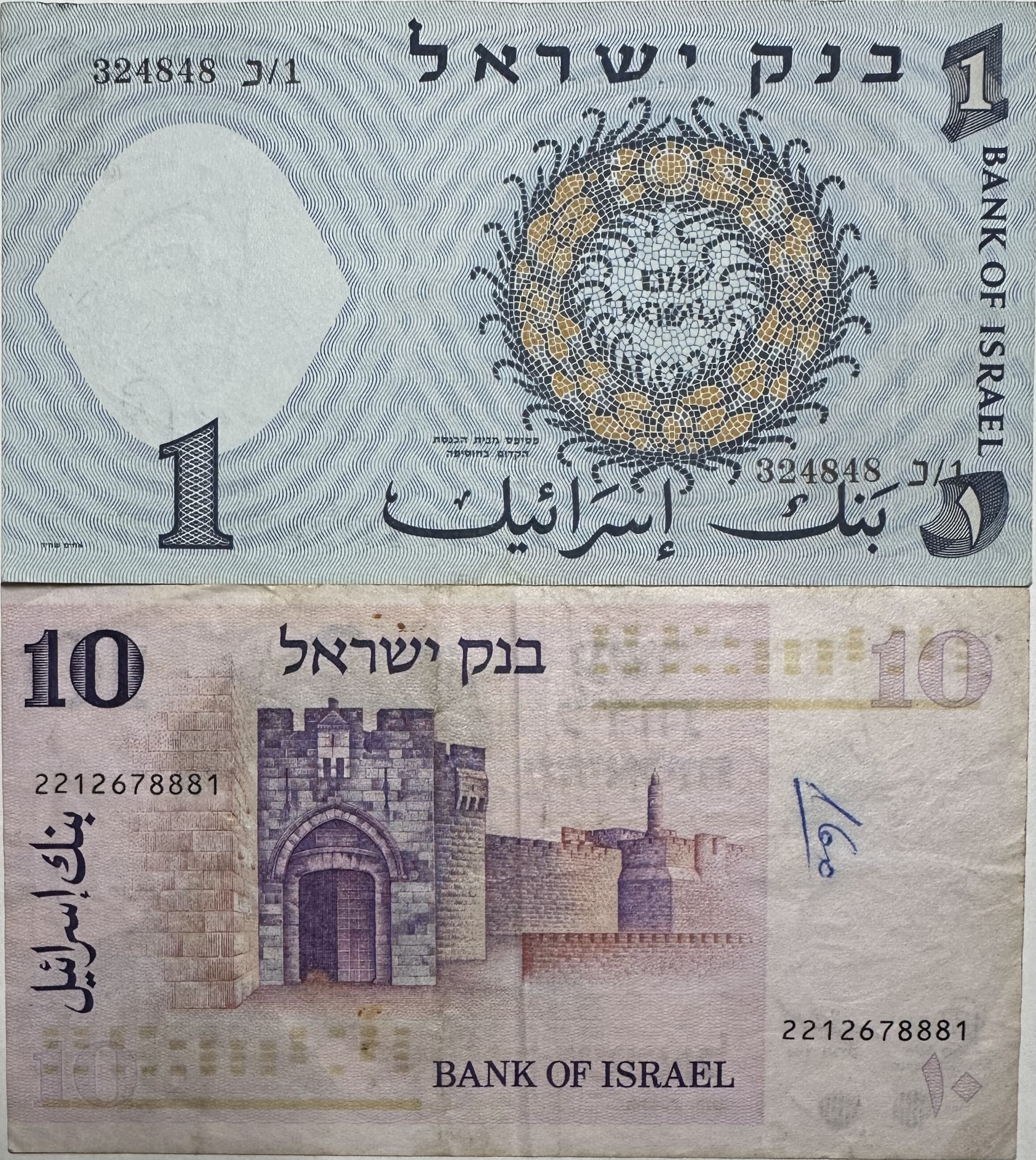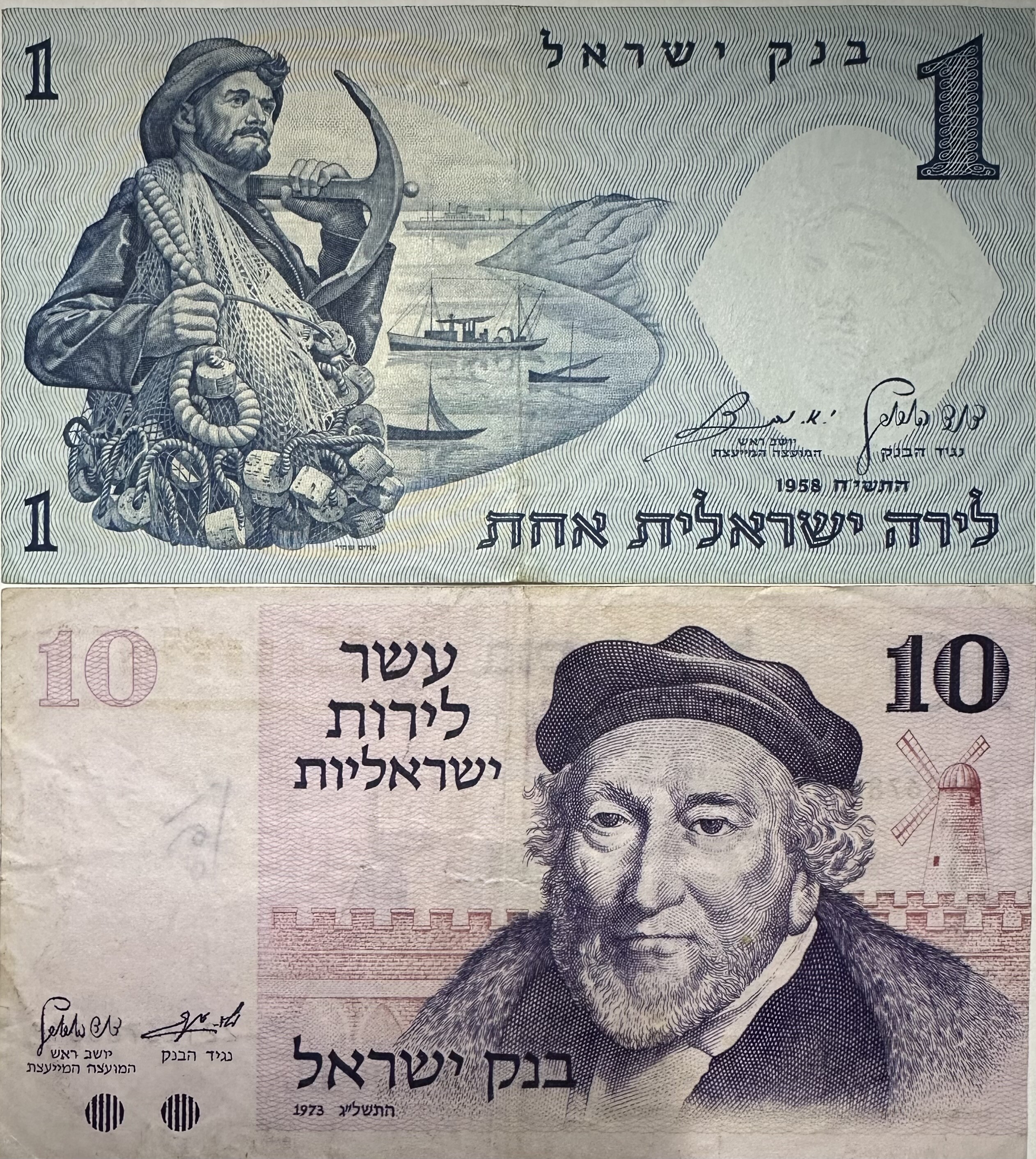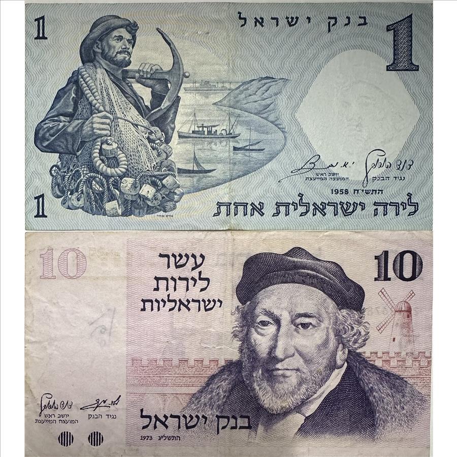 >Israel Crisp 1 and 10 Pounds Notes - 2 Beautifully Illustrated Notes - Walks of Life and Portrait of Montefiore
