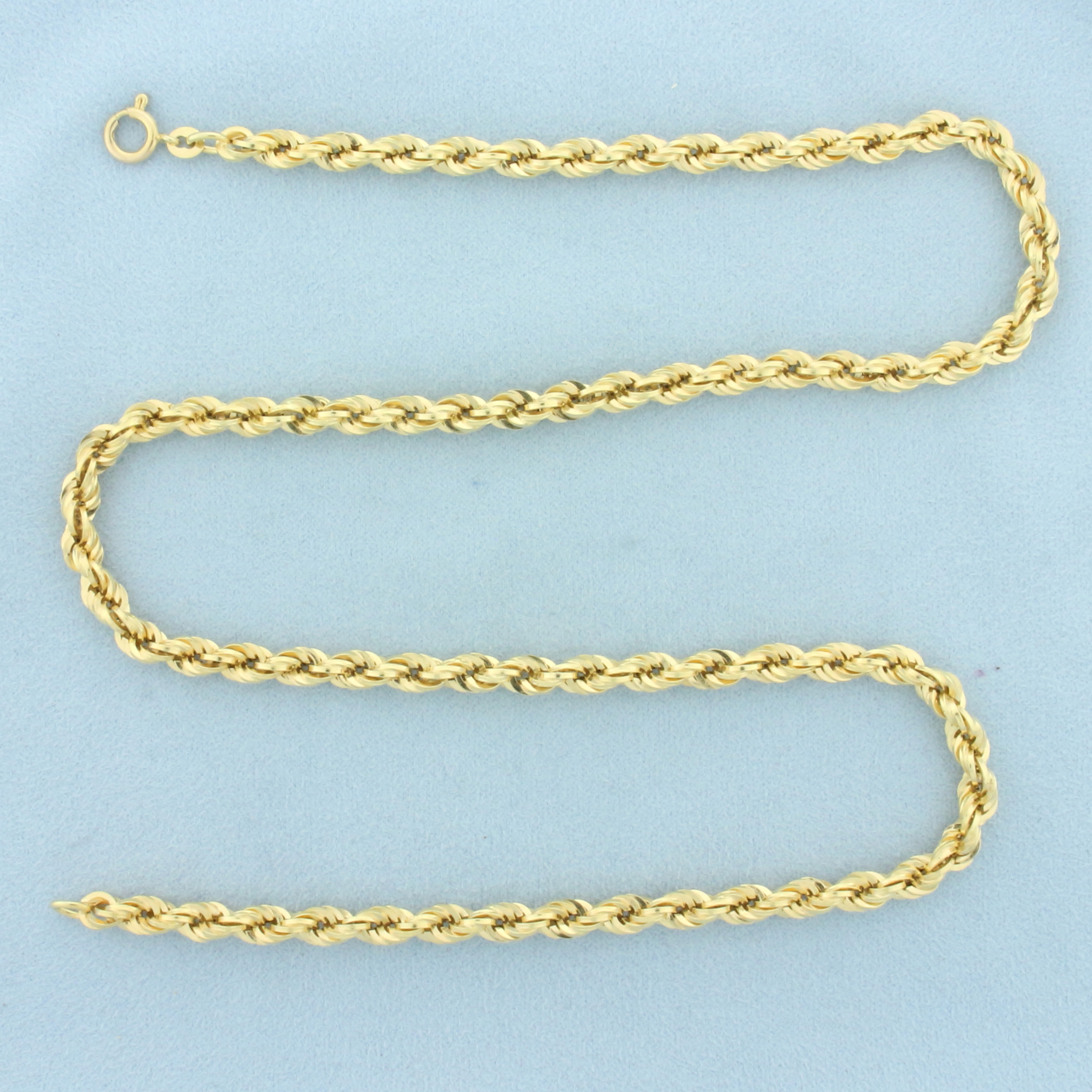 Italian 20 Inch Rope Link Chain Necklace in 14k Yellow Gold