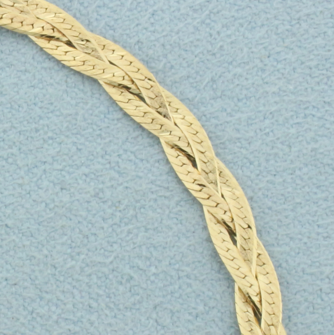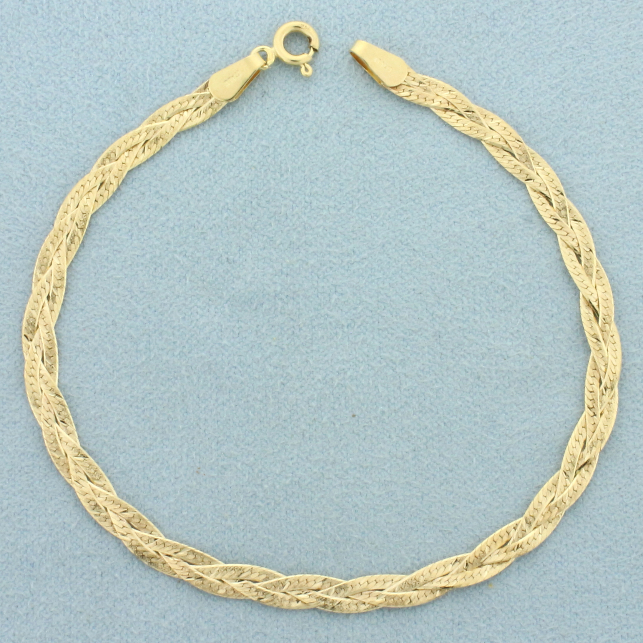 Italian Braided Sandblast Finish Herringbone Link Bracelet in 14k Yellow Gold