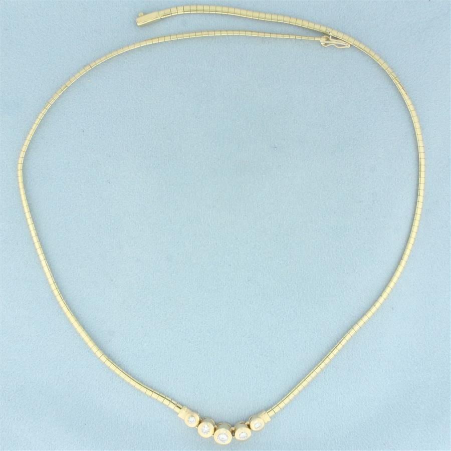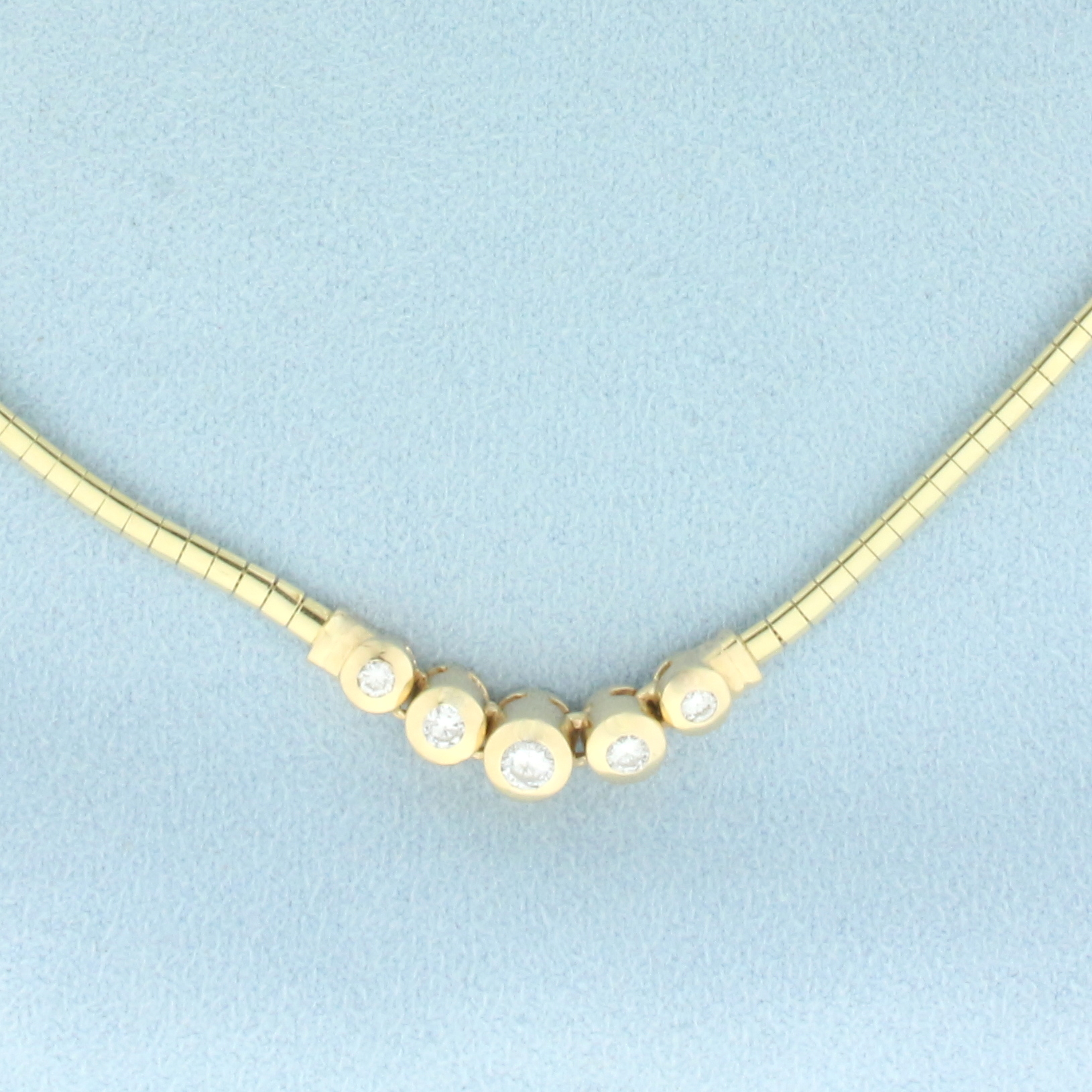 Italian Diamond Omega Necklace in 14k Yellow Gold