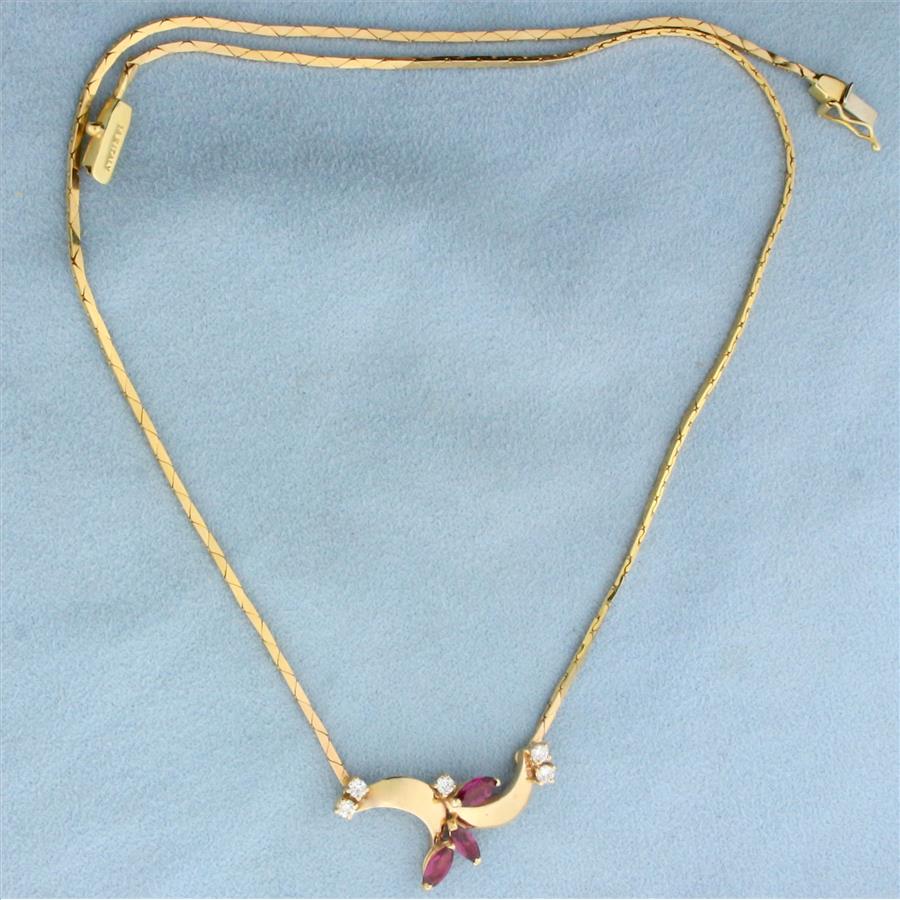 Italian Made Ruby and Diamond Necklace in 14K Yellow Gold
