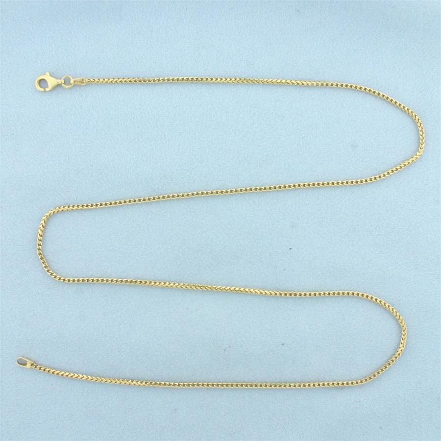 In 18k yellow gold. Italian made. 20 inches long by 1.5mm wide. Lobster clasp. 8.8g.
