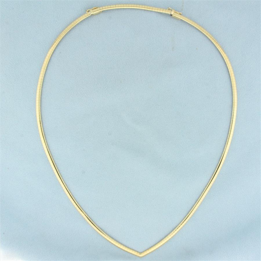 Italian V Shaped Neck Omega Necklace with Extender in 14k Yellow Gold