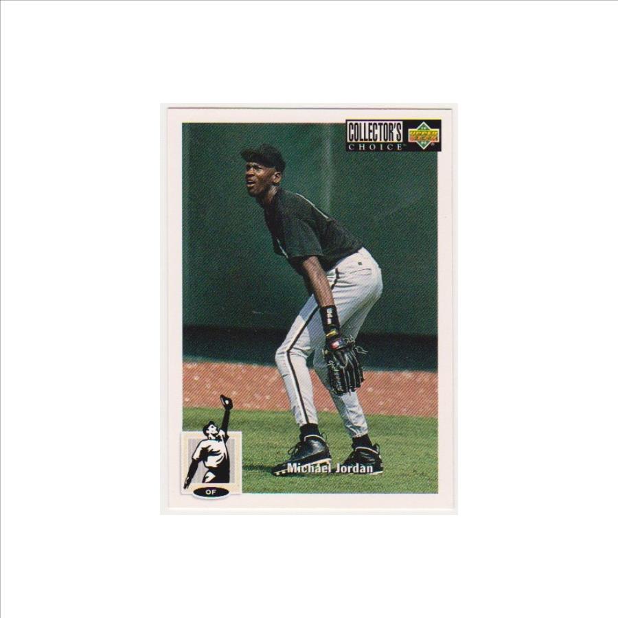 This is a 1994-95 Upper Deck Collector's Choice Michael Jordan #23 card.  This is the tough to find Italian version.  It is one of few cards that has Jordan playing baseball on them but the more scarce part is being the bilingual version released in Italy.  The difference is on the back of the card where at the bottom it has a paragraph in English and Italian.  This is an approximately EX to EX-MT condition card of this NBA Hall of Famer. It has minor wear, but overall displays nicely.