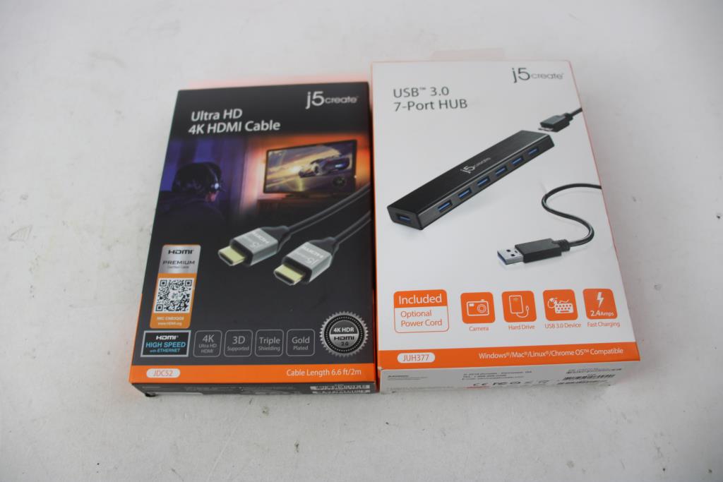J5Create HDMI Cable, USB 3.0 7-Port HUB, G305 Logitech Mouse, And More, 4 Pieces