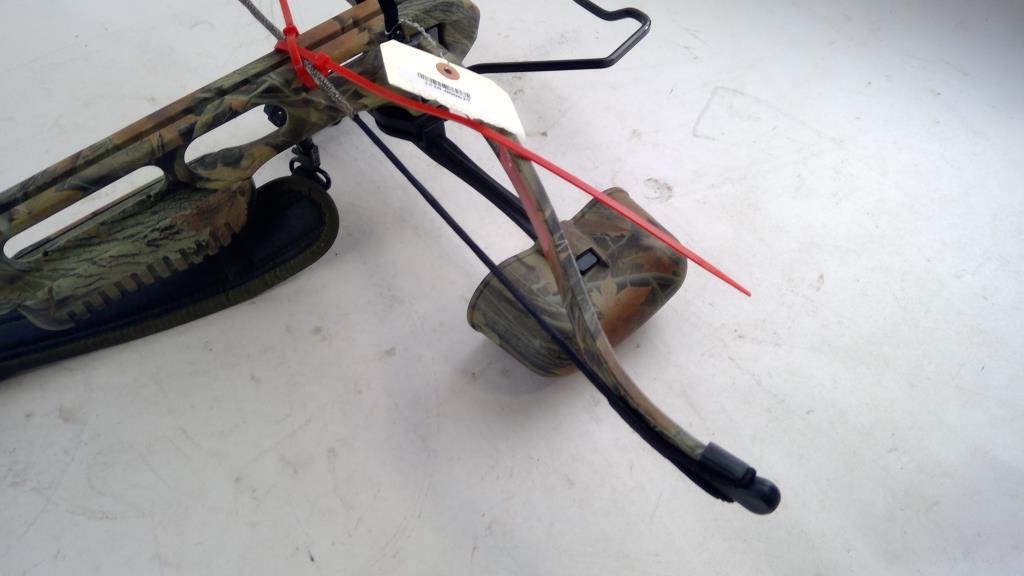 Get a great deal with this online auction presented by PropertyRoom.com on behalf of a law enforcement or public agency client. Model: Jaguar Color: Camo Bow Length: 28" Draw Length: Unknown Draw Weight: Unknown Accessories: None Cosmetic Condition: Good with scratches Shipment by PropertyRoom to any jurisdiction does not mean this item is legal in such jurisdiction. It is your responsibility to have knowledge of, obey, or comply with all applicable laws relating to this item.