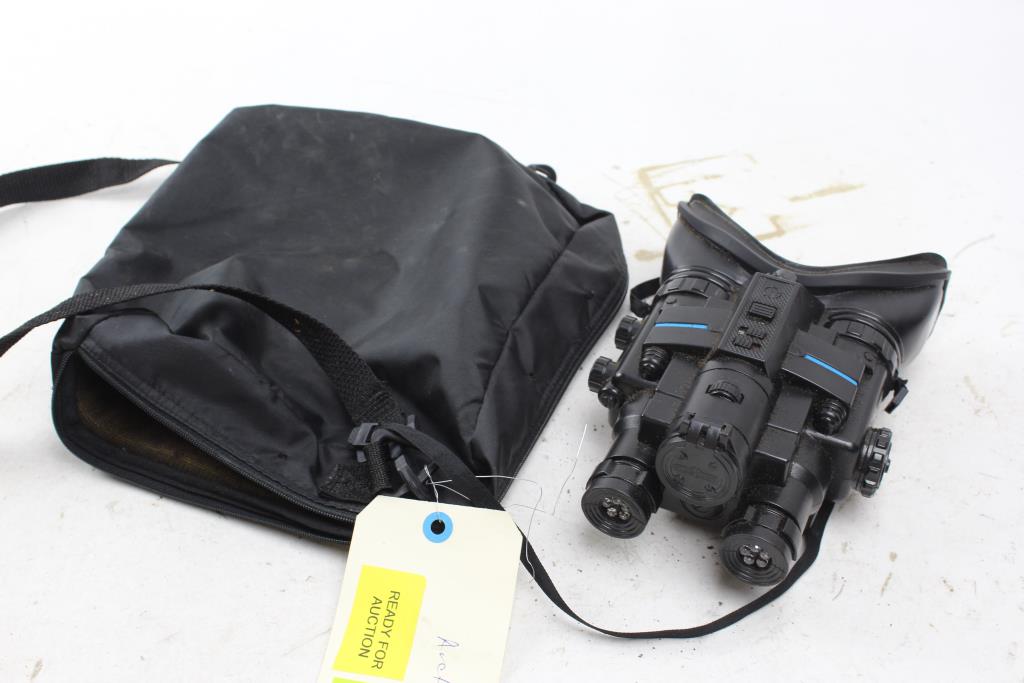 Get a great deal with this online auction for binoculars presented by Property Room on behalf of a law enforcement or public agency client. Model: Jakks Pacific Night Vision Binoculars Optical Coating: not listed Magnification: not listed Field of View: not listed - Accessories: bag