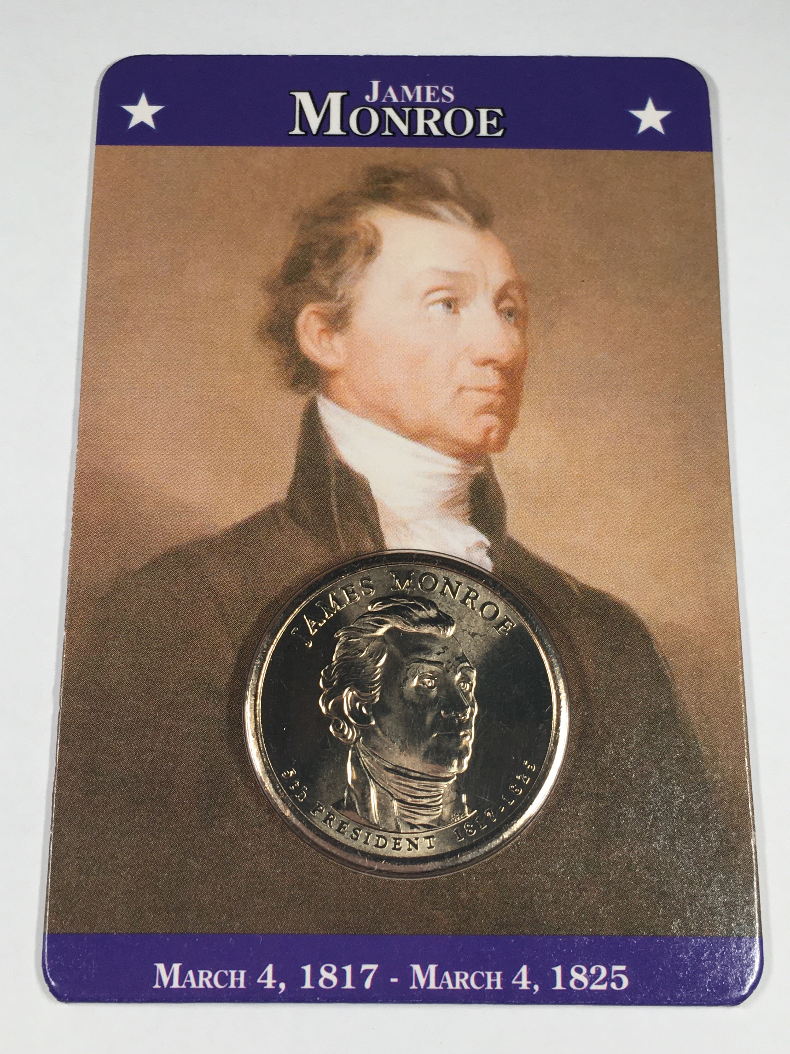 James Monroe Presidential Commemorative Dollar*Brilliant Uncirculated*Facts Card