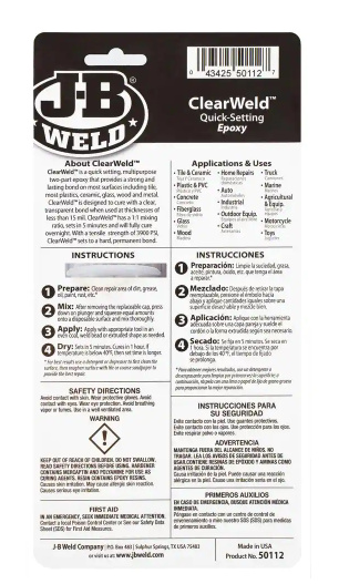 J-B Weld 0.85 oz. ClearWeld Quick-Set Epoxy Syringe