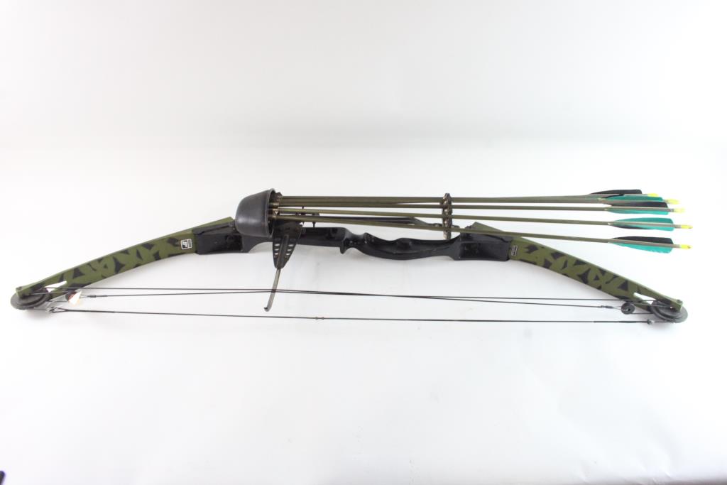 Get a great deal with this online auction presented by PropertyRoom.com on behalf of a law enforcement or public agency client. Model: Unknown Color: Green Bow Length: Appx. 49" Draw Length: Unknown Draw Weight: Unknown Draw: Right Hand Accessories: 6 Arrows Cosmetic Condition: Good with scratches Shipment by PropertyRoom to any jurisdiction does not mean this item is legal in such jurisdiction. It is your responsibility to have knowledge of, obey, or comply with all applicable laws relating to this item.