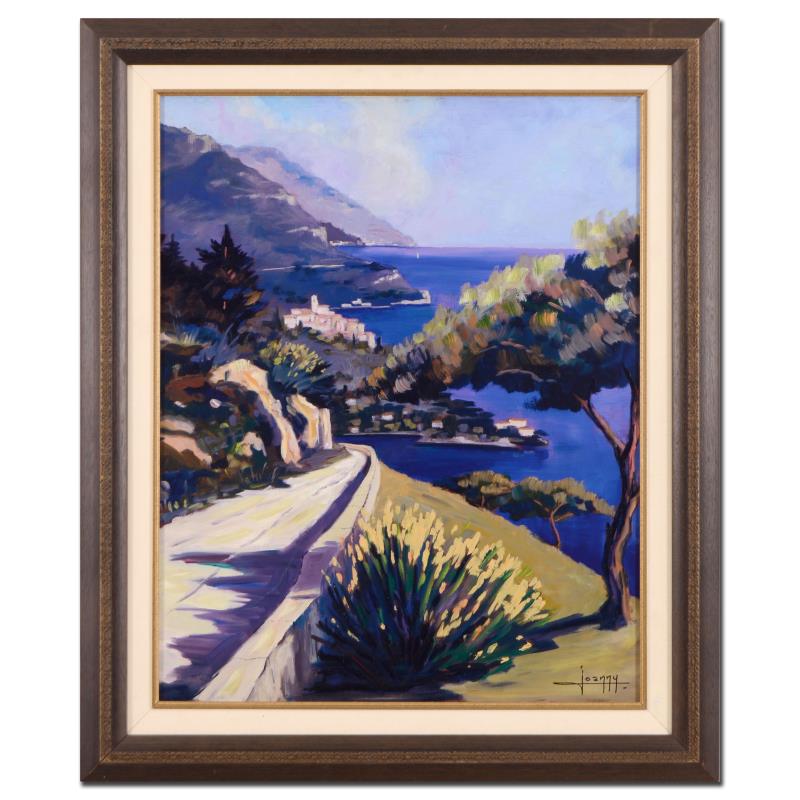 "Riviera Afternoon" is a hand embellished limited edition giclee on canvas by Joanny, numbered 101/250 and hand signed by the artist. This piece is framed. Includes Certificate of Authenticity. Measures approx. 31.5" x 37.5" (frame), 23.5" x 29.5" (image). ** Please note: the frame shows signs of wear. **