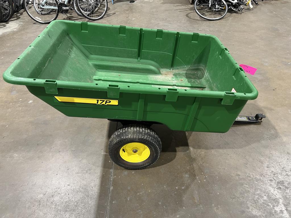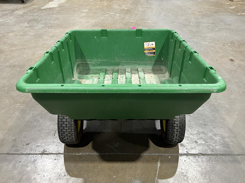 - Item info: 2" hitch, 24" long neck, 15" wheels, 60" long + 40" wide bucket, 10 mold slots for the other accessories, hard molded plastic