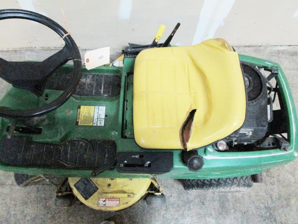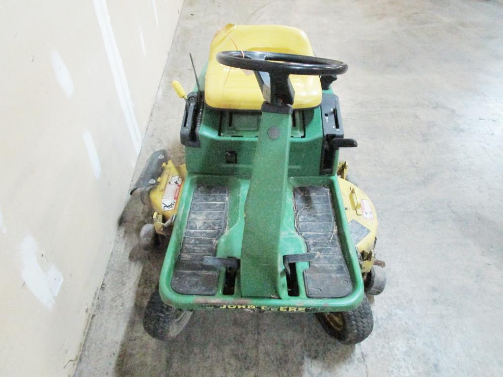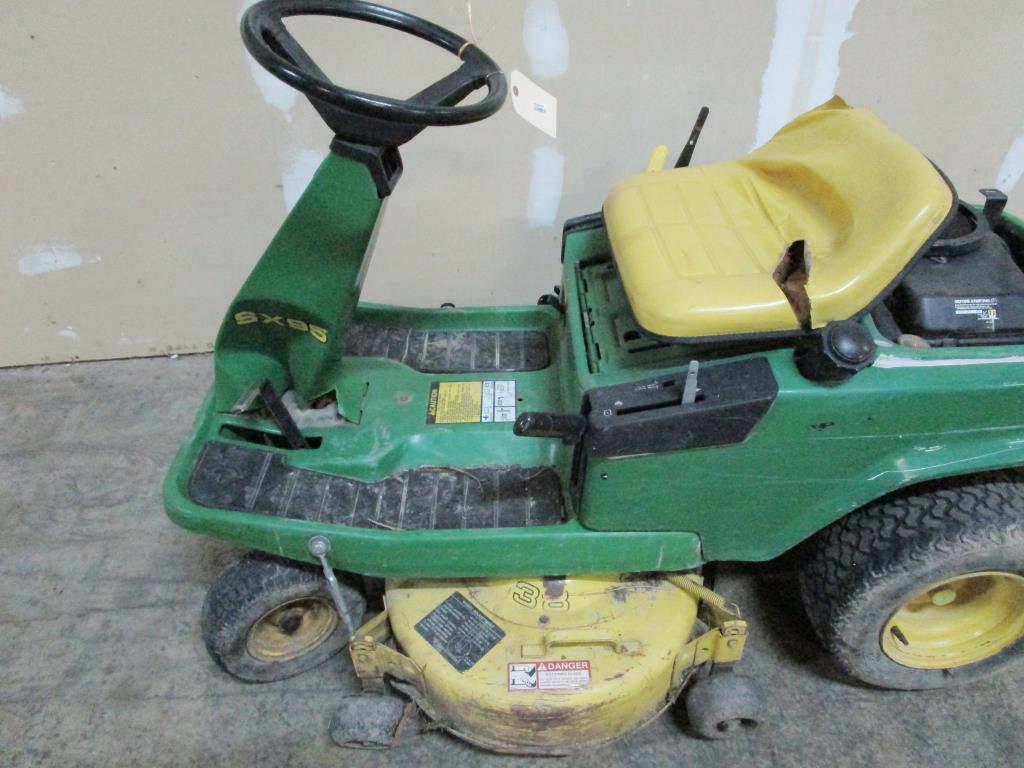 Get a great deal with this online auction presented by PropertyRoom.com on behalf of a law enforcement or public agency client. Brand: John Deere Model: SX95 Color: Green and Yellow Gas powered, key start w/no key, side discharge, rear wheel drive, 7 speed shifter, brake and clutch on the floor, handle that drops the deck, 38" mower deck. - Measurements: 40" T X 43" W X 61"L.
